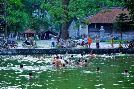 (PLO) - Nằm trong khuôn viên của Khu di tích Chùa Thầy (Quốc Oai, Hà Nội), hồ Long Trì là nơi “giải nhiệt” của hàng trăm trẻ em, người lớn ở khu vực này vào những ngày nắng nóng
