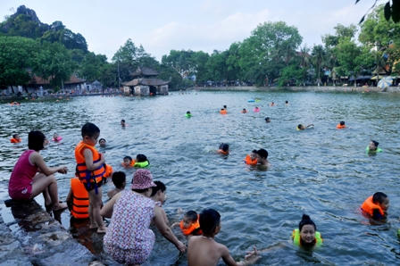 Ước tính mỗi ngày có khoảng 100 – 200 người tới hồ tắm. Trong đó có cả người lớn, trẻ em đã biết bơi và chưa biết bơi.