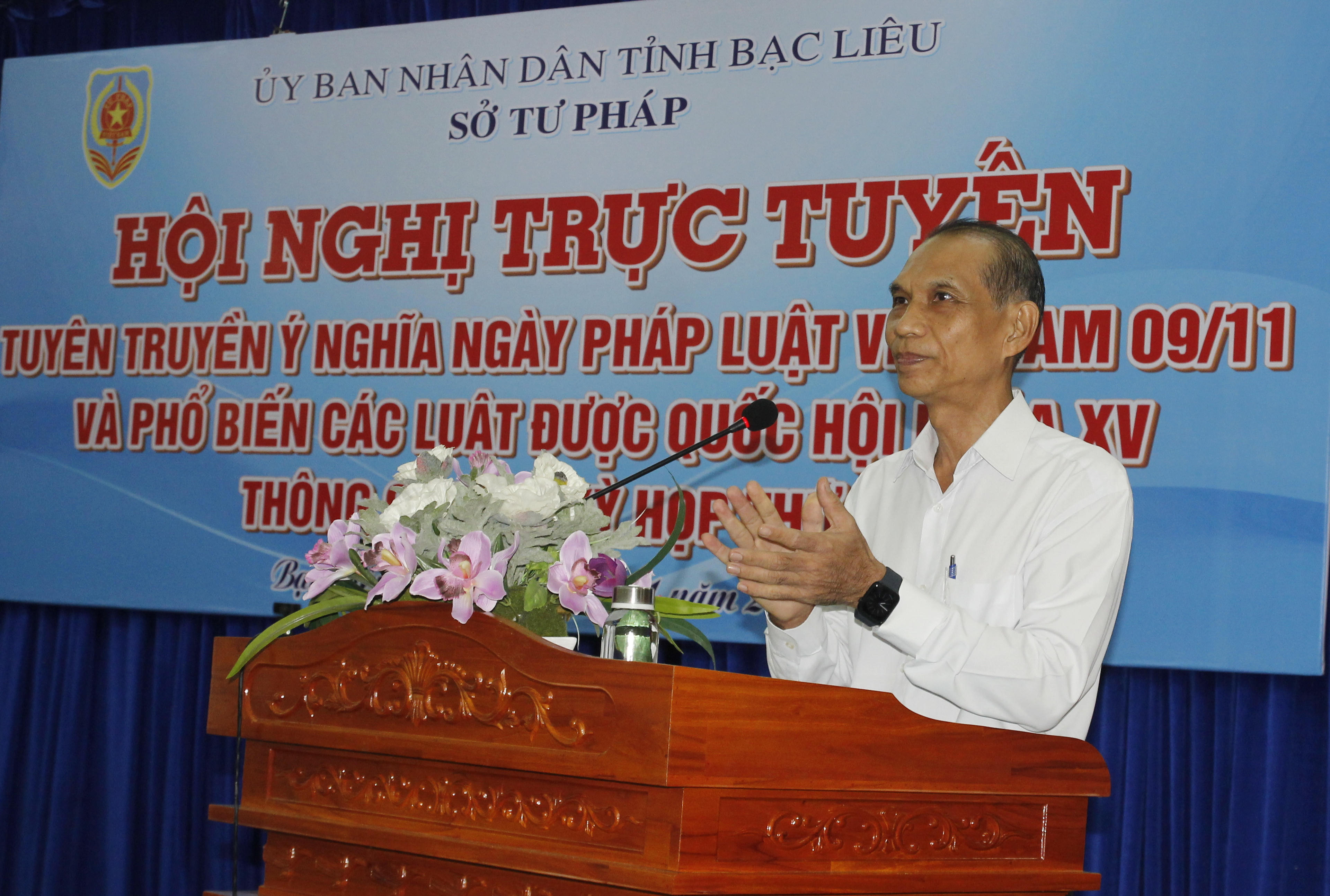 Phát biểu tại Hội nghị, ông Trần Minh Đức - Phó Giám đốc Sở Tư pháp, Phó Chủ tịch Hội đồng phổ biến, giáo dục pháp luật tỉnh Bạc Liêu nhấn mạnh: “Ngày Pháp luật Việt Nam là một sự kiện có ý nghĩa lớn đối với sự phát triển của Nhà nước pháp quyền và xã hội dân chủ ở Việt Nam. Hằng năm, vào Ngày Pháp luật, các cơ quan nhà nước, tổ chức xã hội và cộng đồng dân cư trên cả nước đều tổ chức nhiều hoạt động như PBGDPL; tổng kết, đánh giá công tác xây dựng, thi hành pháp luật; tôn vinh, khen thưởng những tập thể, cá nhân có thành tích xuất sắc trong lĩnh vực này”