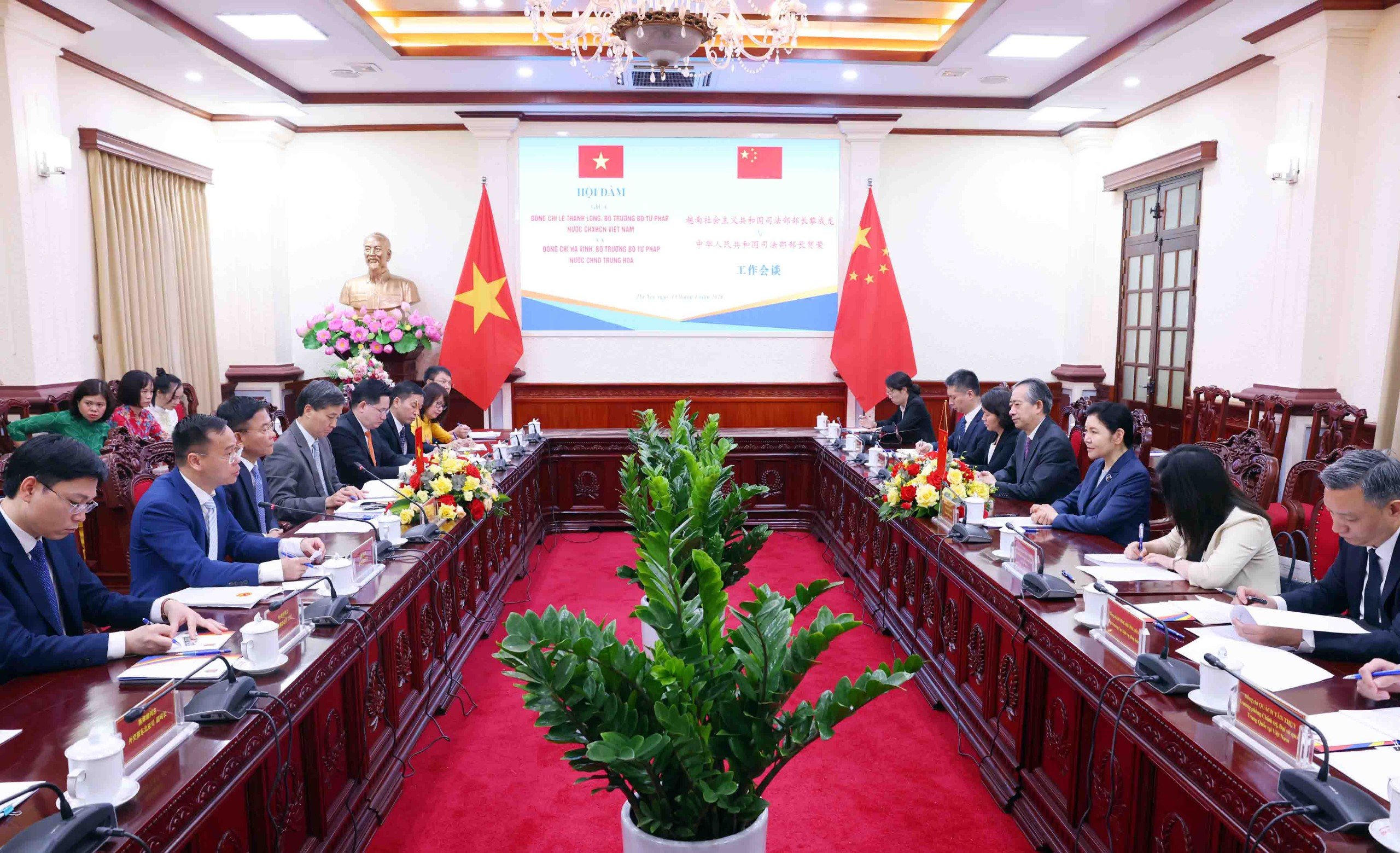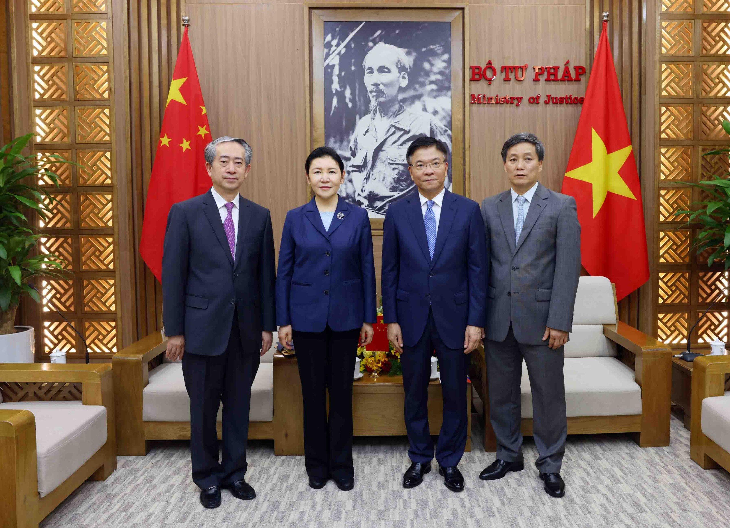 Về quan hệ hợp tác pháp luật và tư pháp Việt Nam - Trung Quốc, hai Bộ trưởng đánh giá cao việc trong thời gian qua, Bộ Tư pháp hai nước đã nỗ lực đàm phán và ký kết được 2 văn kiện hợp tác quan trọng. Ngày 31/10/2022 nhân chuyến thăm chính thức Trung Quốc của Tổng Bí thư Nguyễn Phú Trọng, hai Bộ đã ký Bản ghi nhớ hợp tác trong lĩnh vực pháp luật thay thế cho văn bản hợp tác được ký trước đây là Nghị định thư hợp tác giữa Bộ Tư pháp nước Cộng hòa XHCN Việt Nam và Bộ Tư pháp CHND Trung Hoa năm 1997.