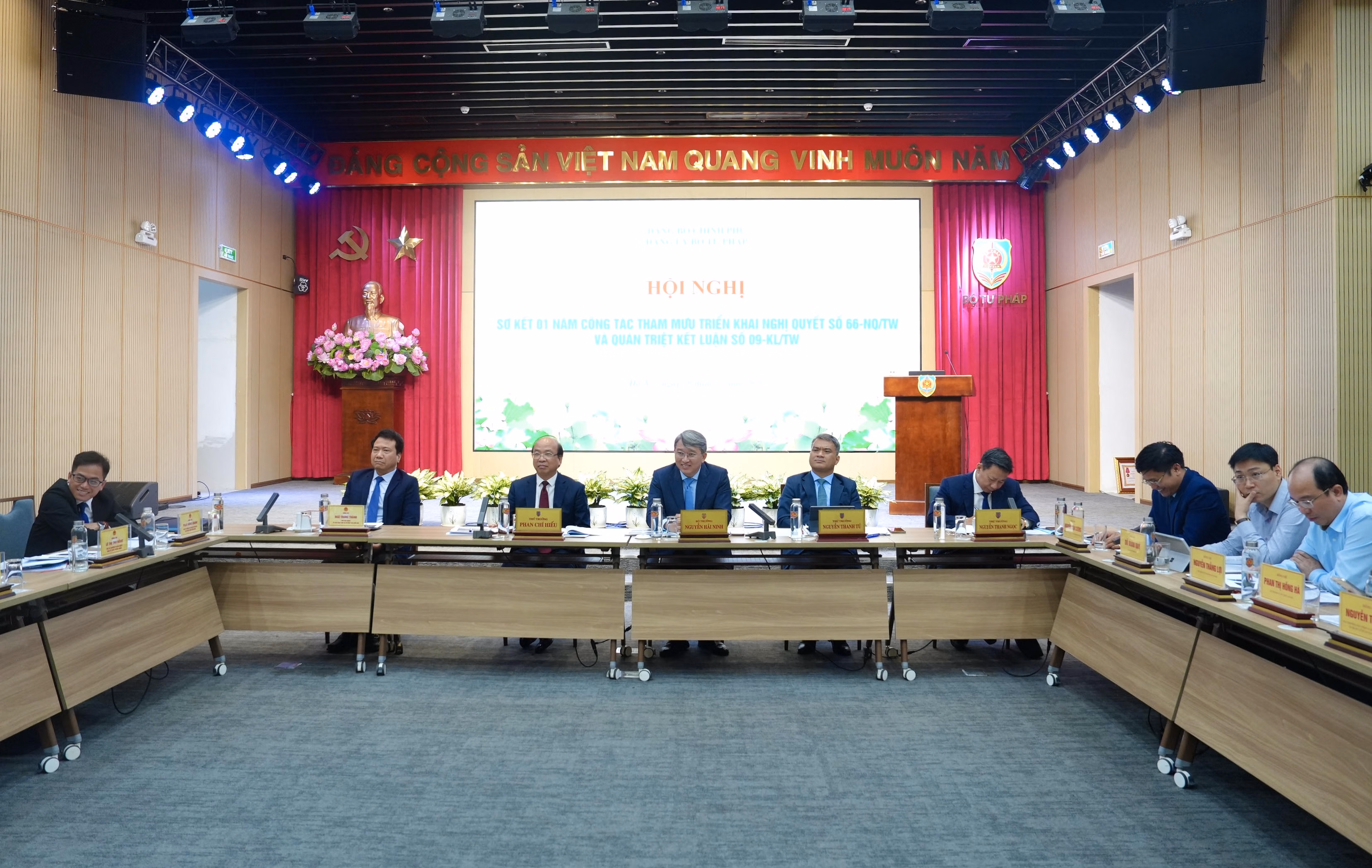 Tham dự Hội nghị có các Thứ trưởng Phan Chí Hiếu, Nguyễn Thanh Tú, Nguyễn Thanh Ngọc và Phó Chủ nhiệm Ủy ban Pháp luật và Tư pháp của Quốc hội Ngô Trung Thành, cùng đại diện lãnh đạo các đơn vị thuộc Bộ.