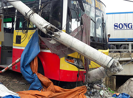 Chiếc xe buýt húc đổ chiếc cột điện, lao vị trí anh Thanh đang đứng hất văng xuống sông rồi mới dừng lại. Nạn nhân được người dân đưa đi cấp cứu nhưng đã tử vong. Hiện trường chiếc xe máy của nạn nhân bị đâm nát nằm cuộn dưới gầm xe buýt, chiếc cột điện bị gãy gập, phần đầu xe buýt bị hư hỏng nặng….