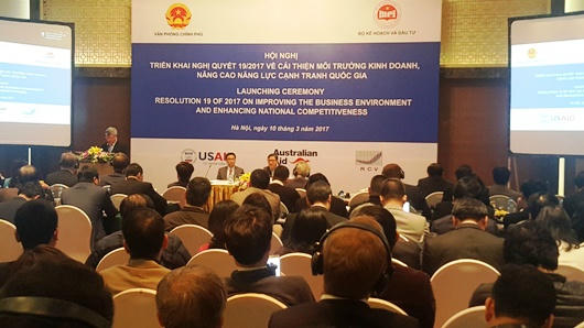 Sáng nay (10/3), Văn phòng Chính phủ và Bộ Kế hoạch và Đầu tư (KH&ĐT) với sự hỗ trợ của Cơ quan phát triển quốc tế Hoa Kỳ, Đại sứ quán Anh tại Việt Nam đã tổ chức Hội nghị triển khai Nghị quyết 19/2017 về cải thiện môi trường kinh doanh và nâng cao năng lực cạnh tranh quốc gia.