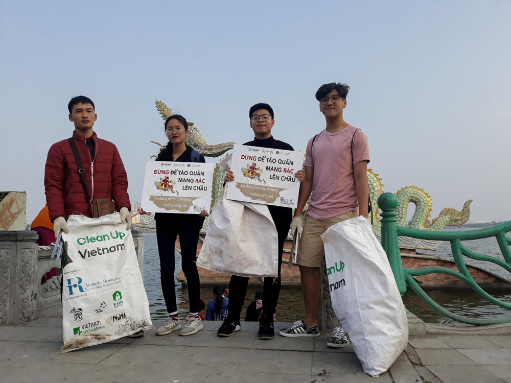Hoạt động thu gom túi ni lông sau khi thả cá của nhóm “Keep Hà Nội clean" đã diễn ra 3 năm nay, Câu lạc bộ này do một người nước ngoài yêu Hà Nội sáng lập với thông điệp: “Đừng để ông Táo mang rác lên chầu”