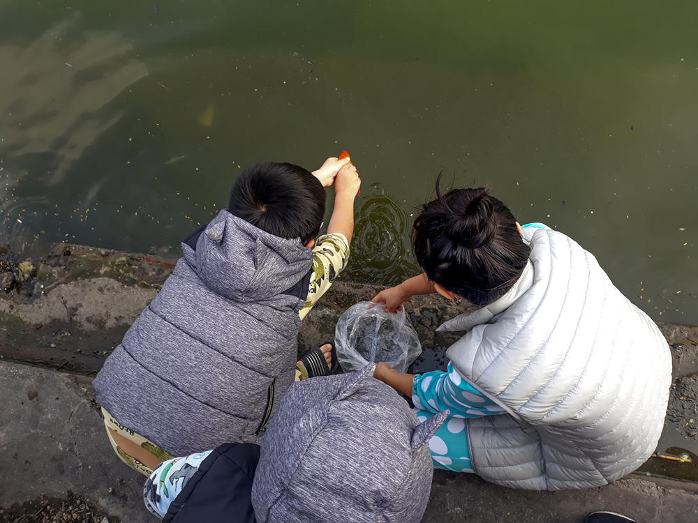 Nhiều người ý thức sau khi thả cá đã tự giác bỏ túi ni lông vào bao bì ở trên bờ