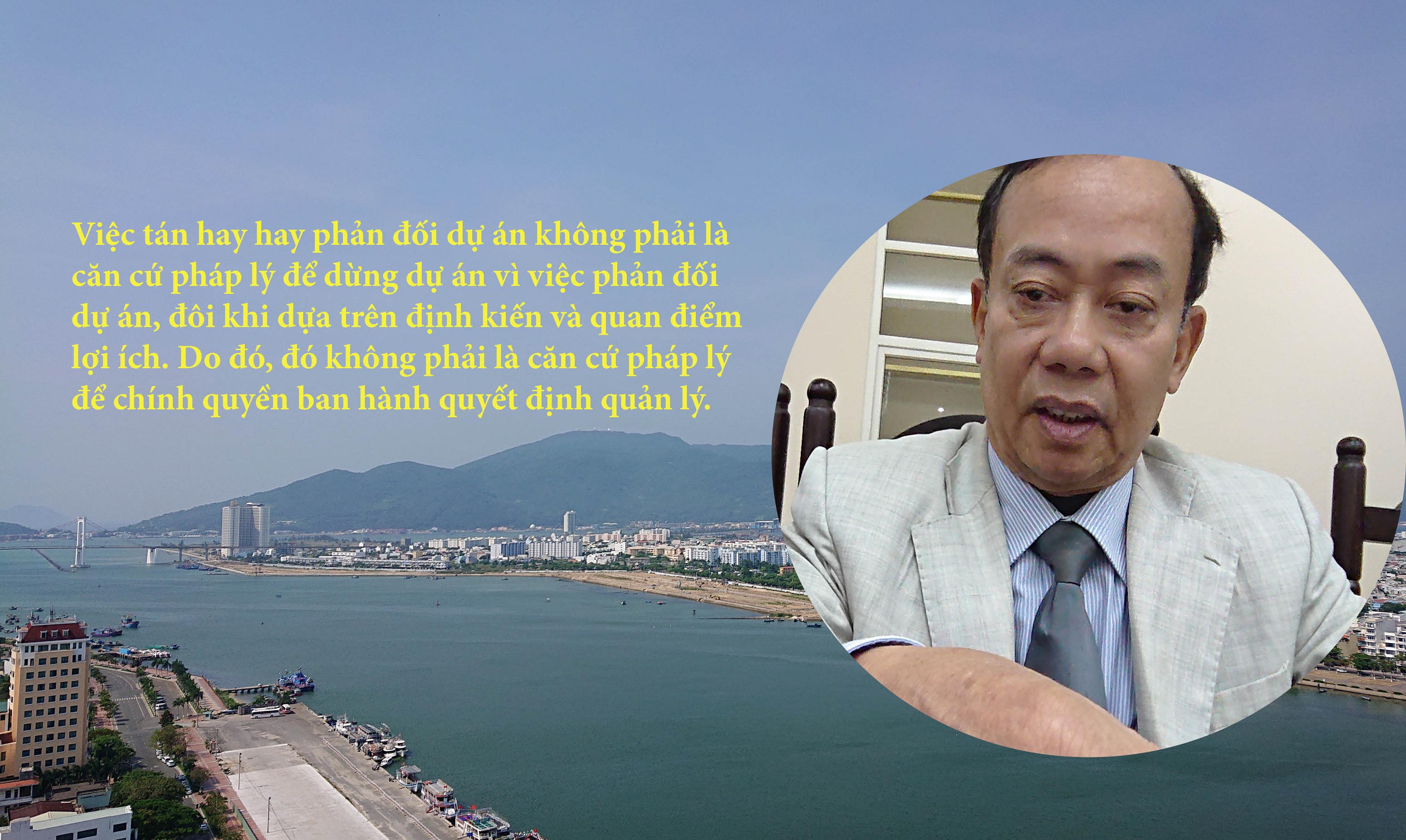 Tôi thấy rõ hai luồng ý kiến về vụ việc này. Một luồng ý kiến cho rằng, cần phải xem xét dừng dự án vì tác động môi trường, đặc biệt là đối với dòng chảy sông Hàn. Ngược lại, nhiều ý kiến cho rằng, đó là vấn đề đã được giải quyết từ năm 2016 và trước đó, khi dự án được phê duyệt. Đến nay, TP Đà Nẵng chưa có quyết định gì về dự án này thì có nghĩa là chưa có hậu quả pháp lý nào xảy ra.