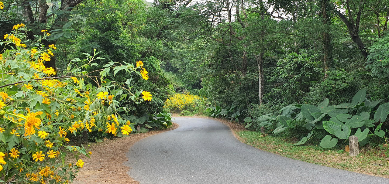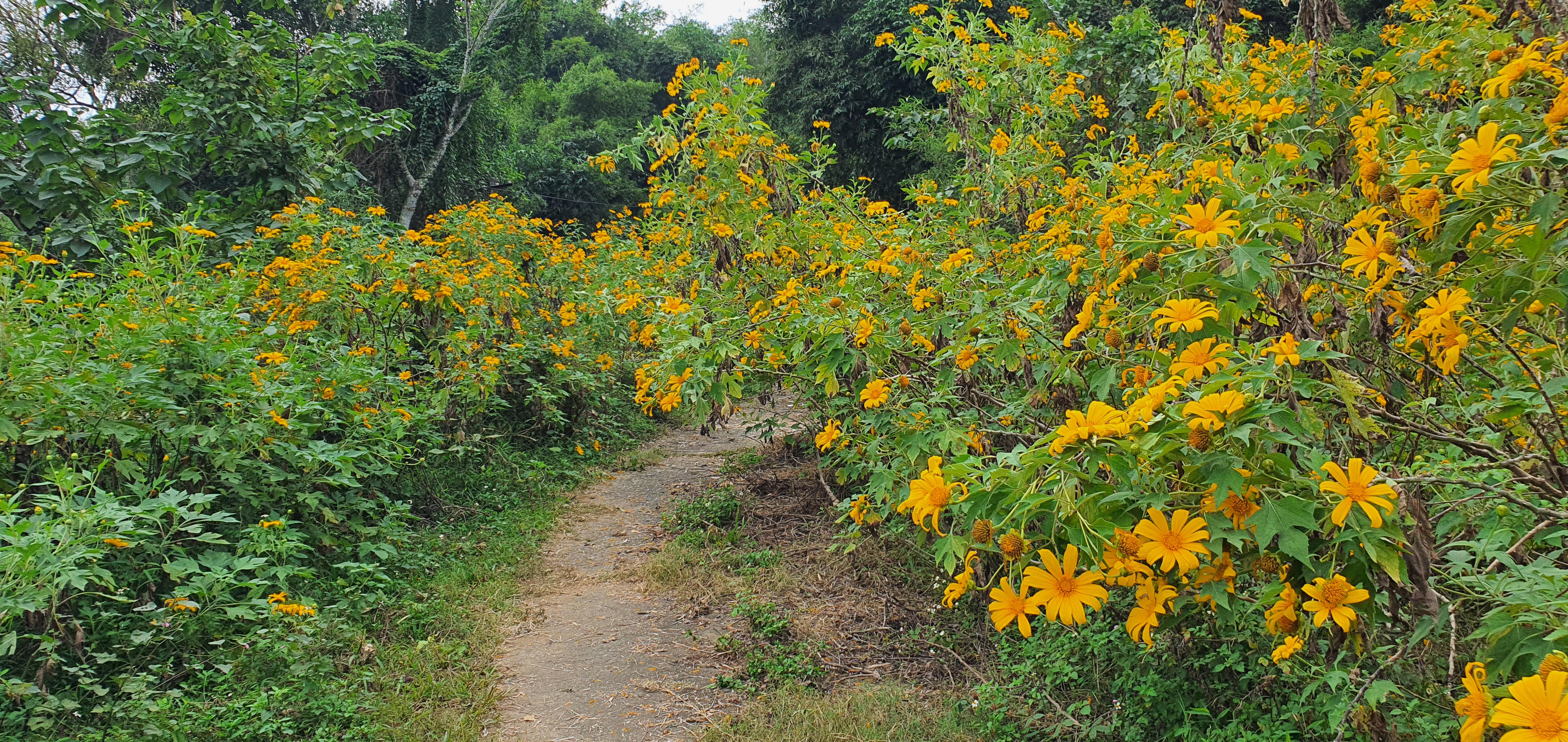 Con đường hoa dã quỳ bắt đầu từ trạm soát vé của Vườn Quốc gia Ba Vì lên tới Nhà khách của vườn quốc gia, kéo dài gần 10km.