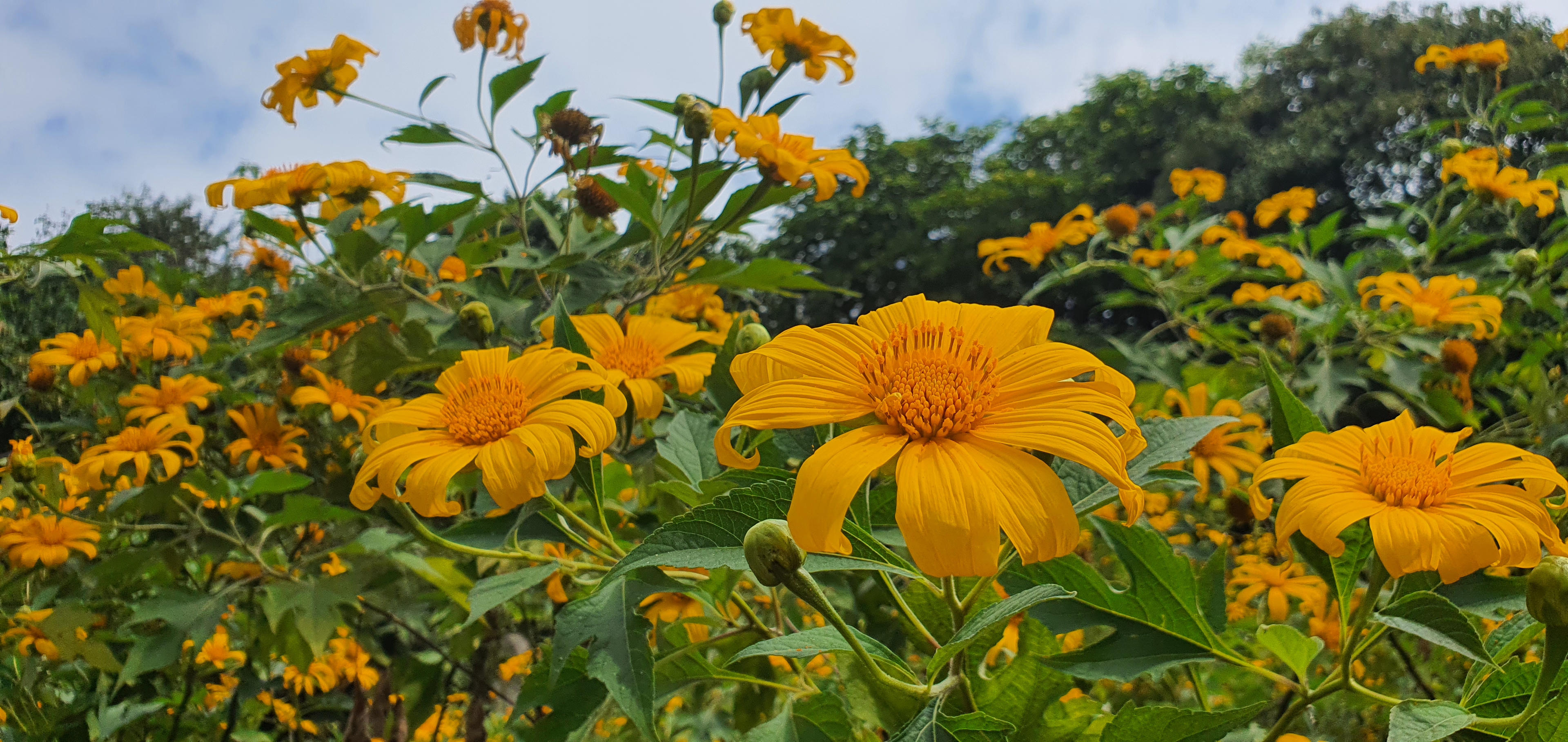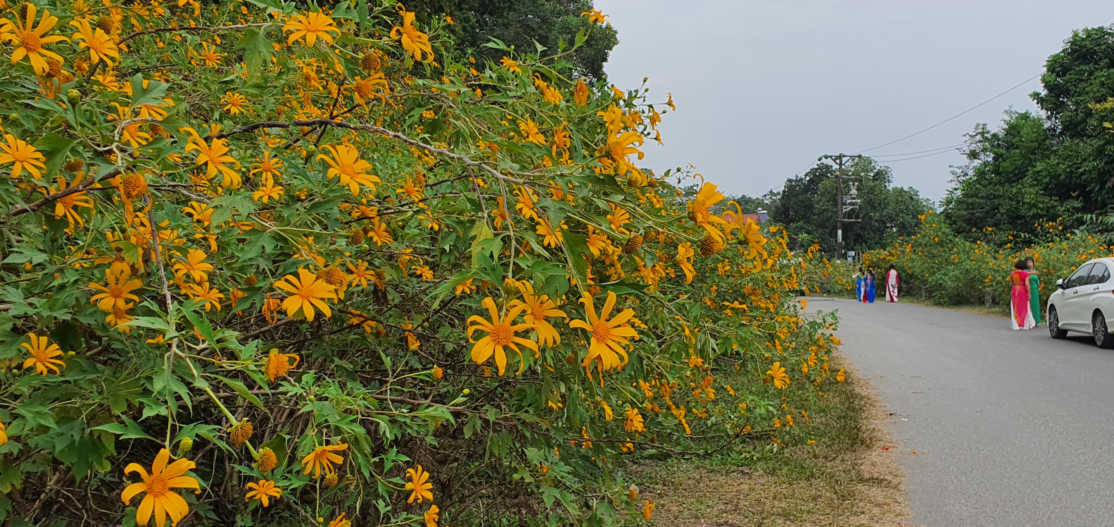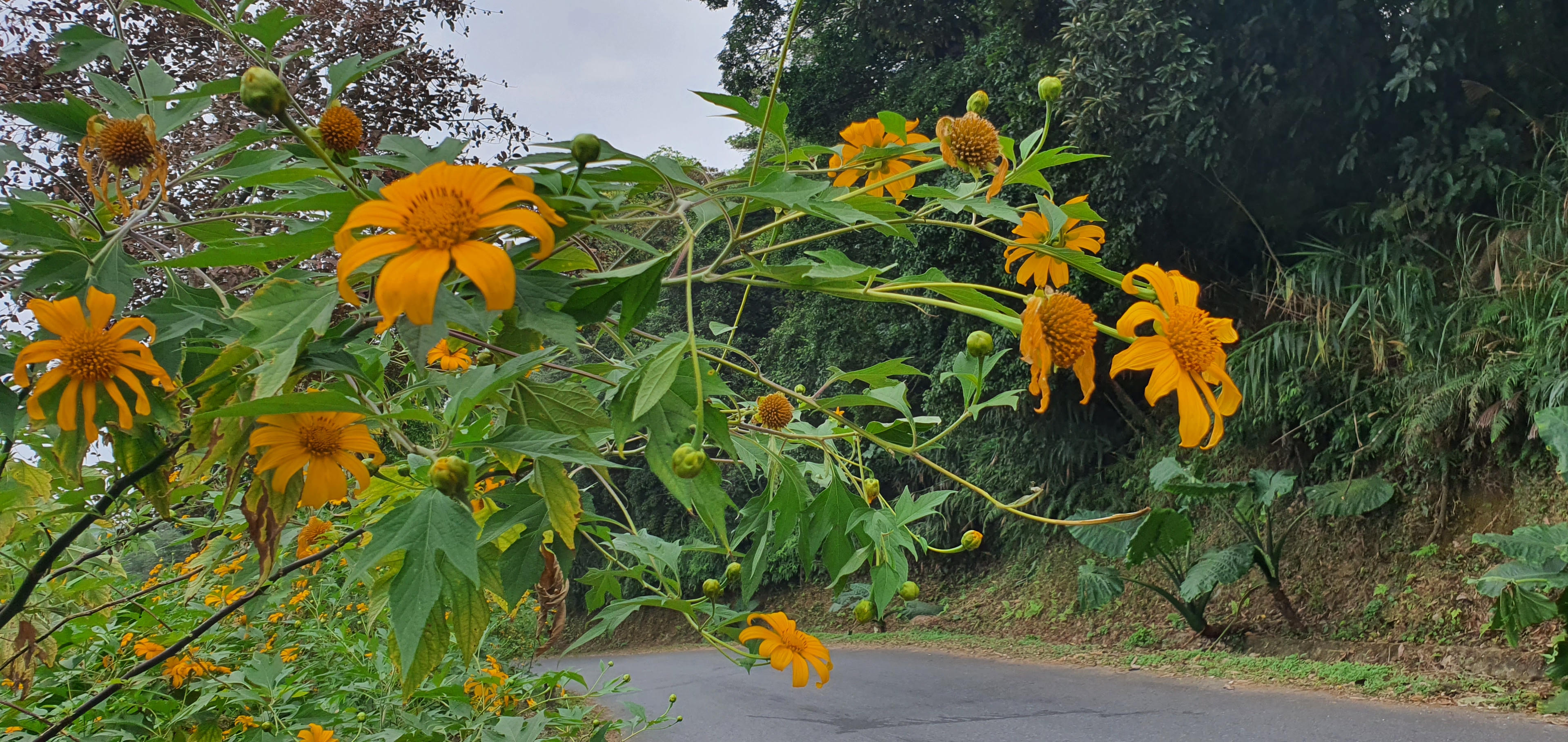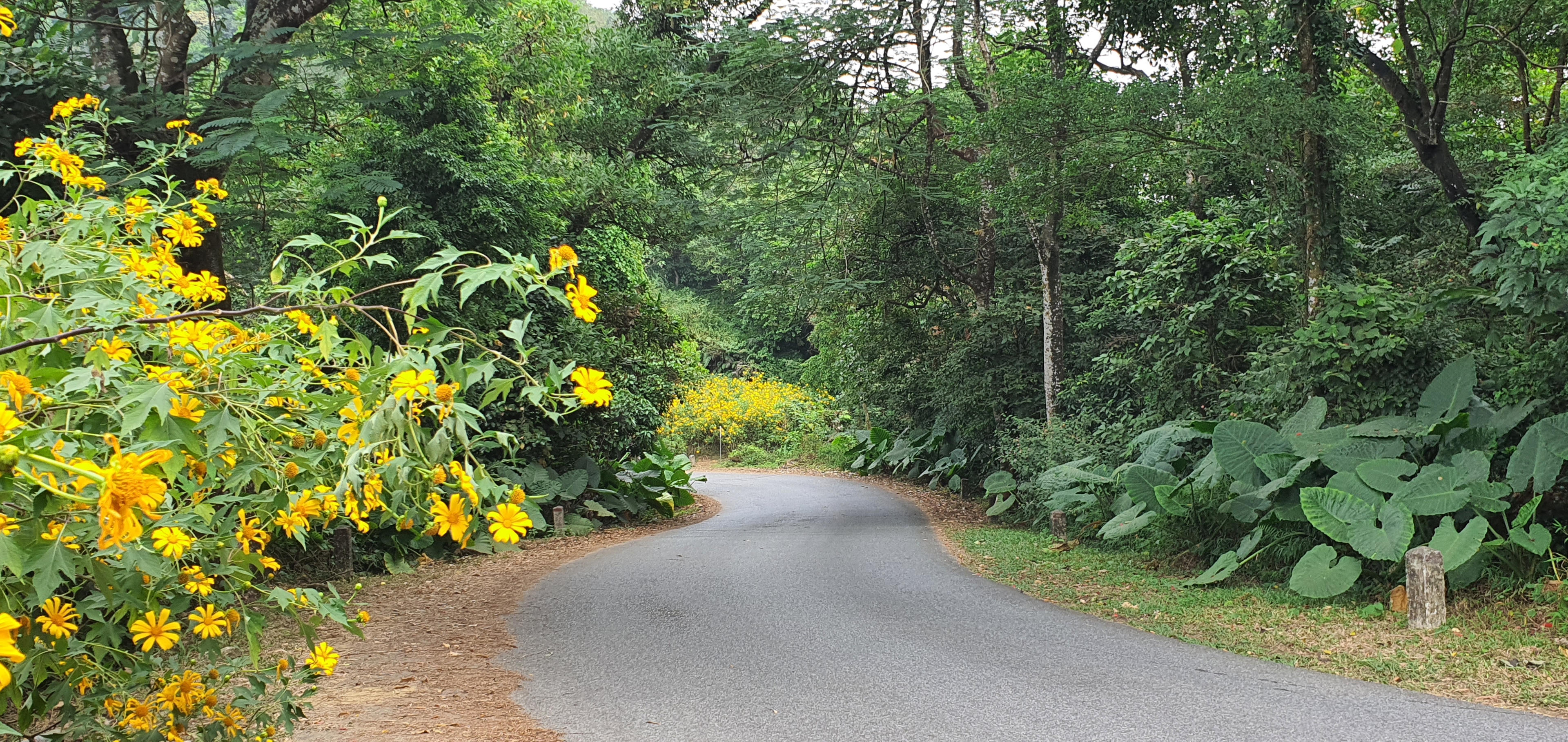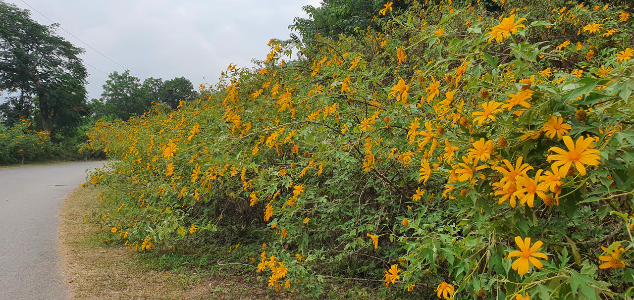 Cách Hà Nội chỉ với 1 giờ chạy xe, trên con đường trải nhựa rộng thênh thang, bạn sẽ được hẹn hò với những bông hoa dã quỳ đang nở rực rỡ, nhuộm vàng con đường lên đỉnh vườn quốc gia Ba Vì.