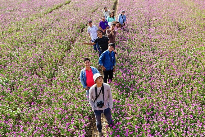 Tuy nhiên, cũng theo anh Hùng, dừa cạn là cây thân gỗ, được trồng thưa, đủ khoảng cách để có thể bước vào. Khi chụp ảnh, bạn nên cẩn thận không giẫm đạp lên hoa cũng như bứt hoa, bẻ cành tạo dáng.