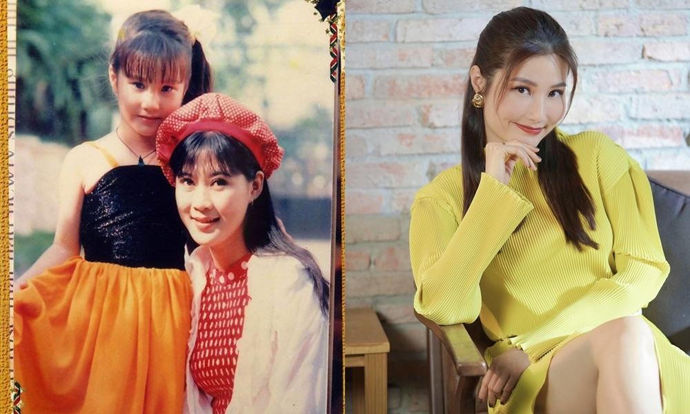 Cô bé mũm mĩm, trắng trẻo chụp cùng nữ hoàng ảnh lịch Diễm Hương trong bức ảnh trái là diễn viên Diễm My 9x năm 1995 . Lúc này, Diễm My năm tuổi, lần đầu đóng phim Đứng dậy sau cơn mê. Còn bức ảnh bên phải là Diễm My thăng hạng nhan sắc ở tuổi 30 khi quay phim 1990.