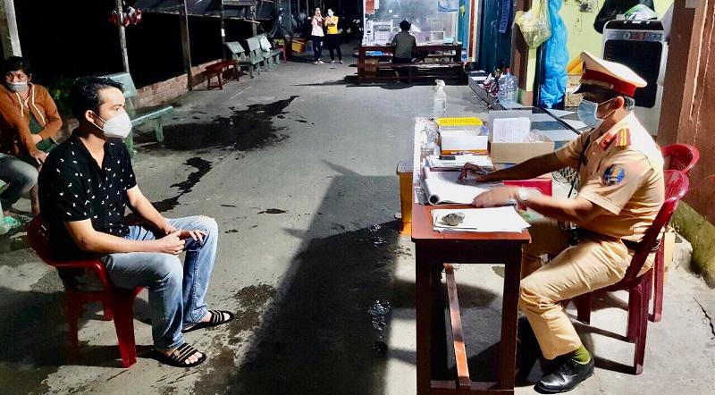 Lực lượng chức năng xử phạt tài xế chở thuê người từ vùng dịch về quê. |