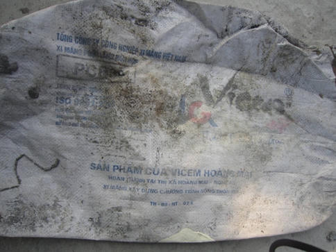 Cũng theo ông Hàn, chính ông là người thuê máy móc và trực tiếp chỉ đạo người dân thi công tuyến đường trên. Để đảm bảo chất lượng công trình trước khi làm ông đã cùng nhân dân chọn các vật liệu liên quan khác một cách kỹ càng như: đá, sỏi…Ngay cả nước sử dụng thi công cũng là nước sạch chứ không sử dụng nước sông, hồ bởi người dân sợ ảnh hưởng đến chất lượng công trình. Loại xi măng mà người dân được huyện, xã cấp là xi măng PCB30 – Sản phẩm của Công ty Vicem Hoàng Mai (trên bao bì có ghi dòng chữ “Thách thức thời gian”, “Xi măng xây dựng chương trình nông thôn mới”, hoàn thành tại thị xã Hoàng Mai, Nghệ An - PV). Tất cả tuyến đường đều do người dân bỏ công ra thi công chứ không hề thuê nhà thầu, khi làm người dân rất cẩn thận ở từng công đoạn. Sau khi sử dụng một thời gian đầu có hiện tượng lạ thì nhiều bà con đã báo cáo sự việc lên xã, một số người có phần mất niềm tin và cho rằng nguyên nhân là do chất lượng xi măng kém?.