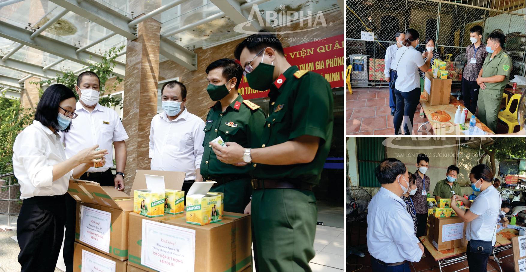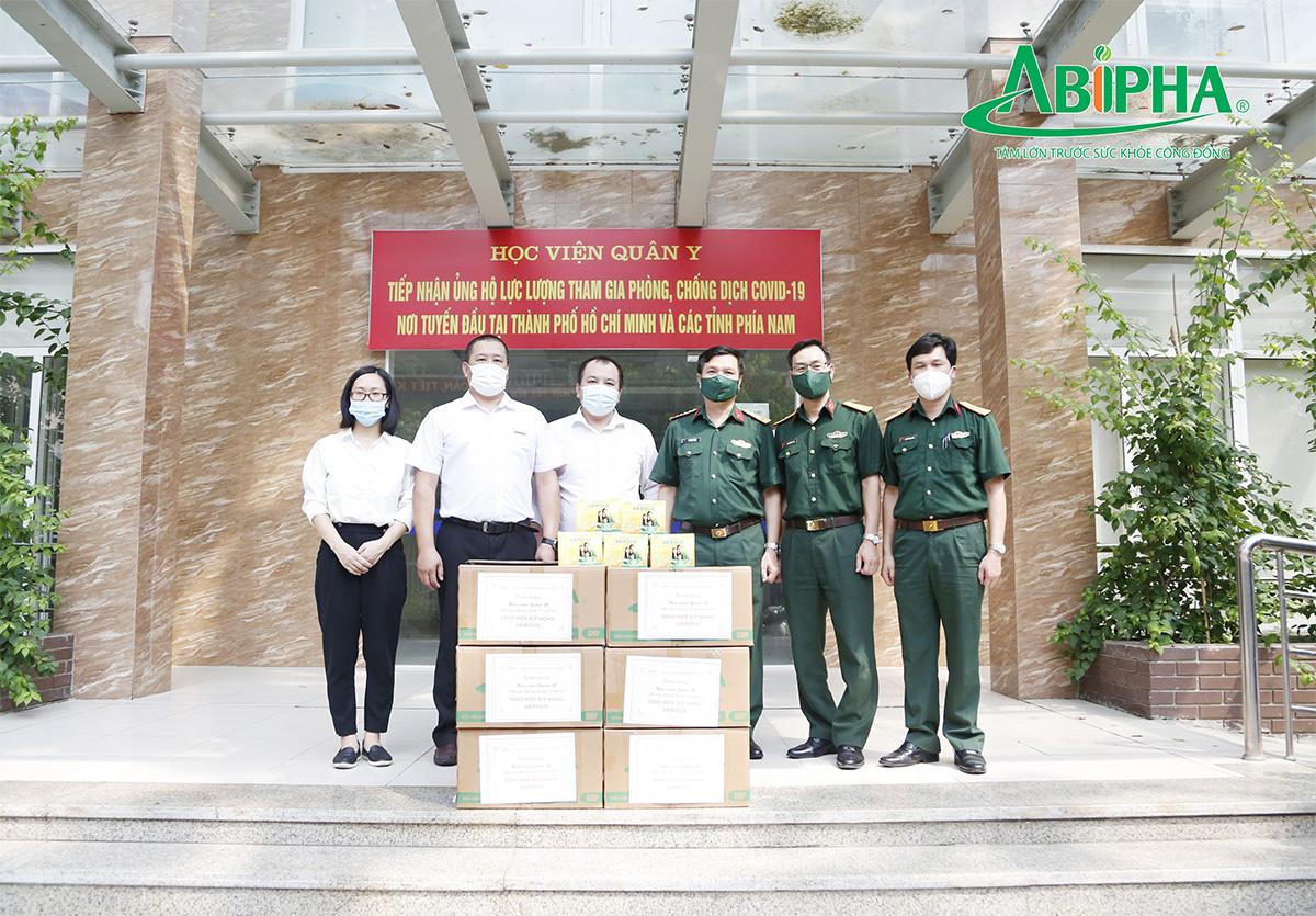 Biết được thông tin này, Công ty CP Dược phẩm Quốc tế Abipha đã kịp thời gửi tặng 1.080 lọ xịt họng Abipolis cho Học viện Quân Y để phục vụ cho công tác phòng chống dịch COVID–19 ở miền Nam.