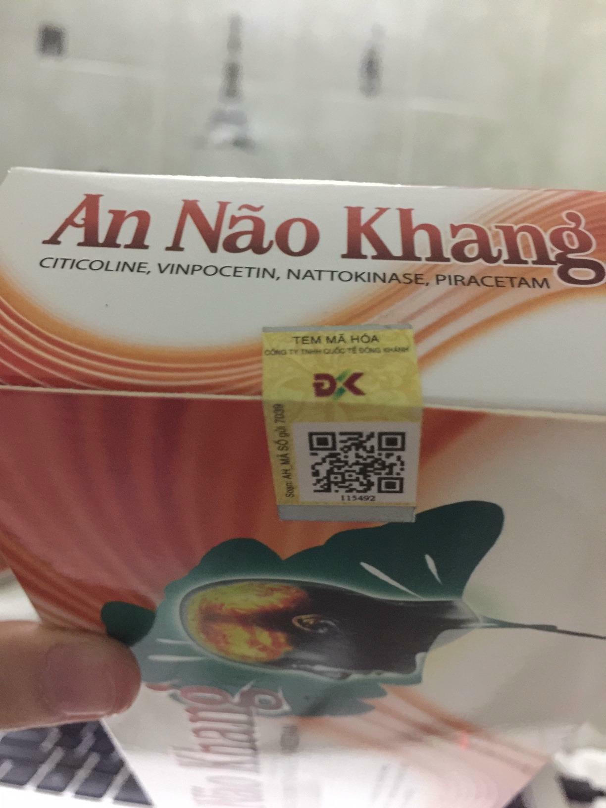 Chị Phạm Thị K. (31 tuổi, ngụ quận Ba Đình) cho biết, chị mua sản phẩm An Não Khang tại hiệu thuốc ở đường Hoàng Hoa Thám. Khi đem ra sử dụng, chị thấy bên ngoài hộp thuốc có gắn tem mã hóa trông rất chuyên nghiệp. Tiếp đó là lớp bao bì được làm bằng nilong cứng, đóng gói rất cẩn thận và không có dấu hiệu gì của việc bị trầy xước.