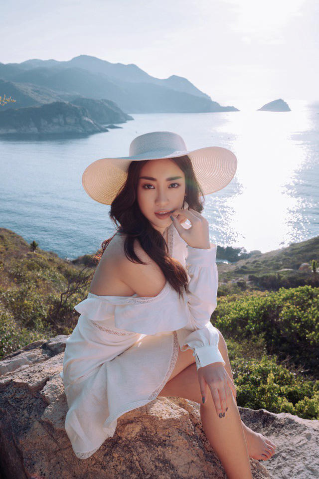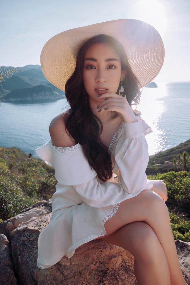 Vẻ đẹp ngây thơ cùng đôi mắt to tròn đặc trưng của Hoa hậu Việt Nam Đỗ Mỹ Linh rạng rỡ và nổi bật giữa khung cảnh thật hùng vĩ nằm ẩn mình trong rừng quốc gia Núi Chúa.