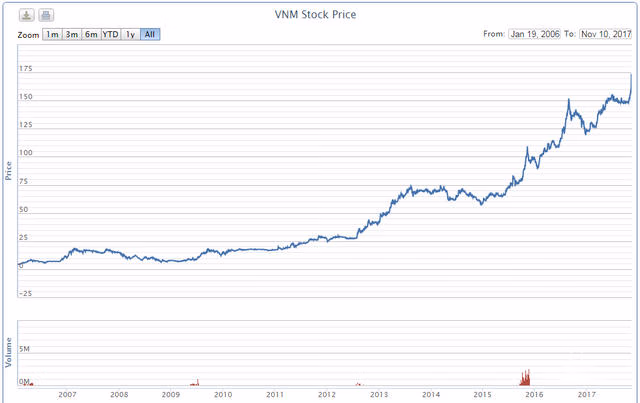 Thị giá cổ phiếu VNM trong hơn 1 thập kỷ