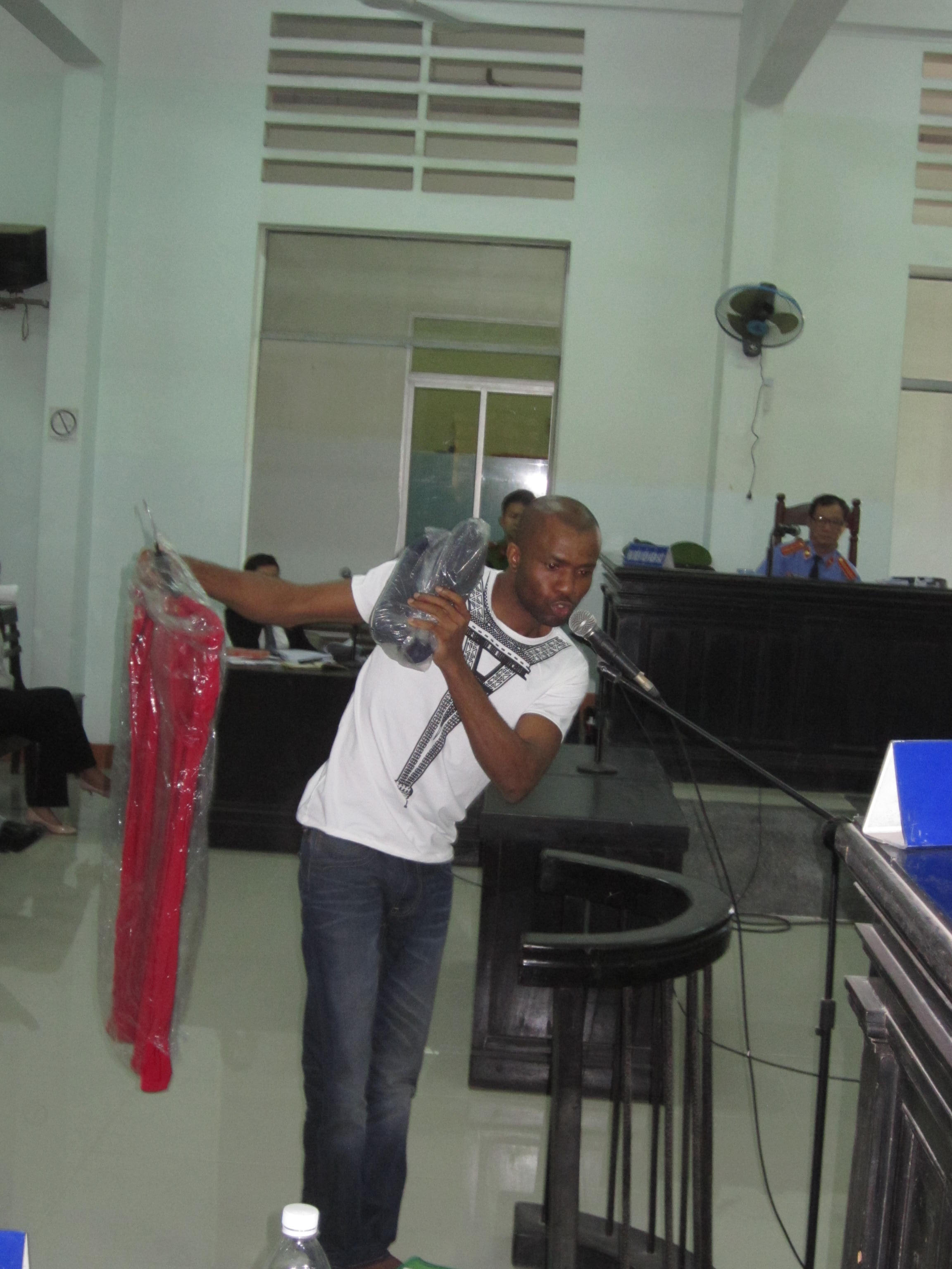 | Đối tượng Collins tại phiên tòa năm 2015 (trong hình này, Collins cho rằng mình không lừa đảo mà chỉ buôn bán quần áo). |