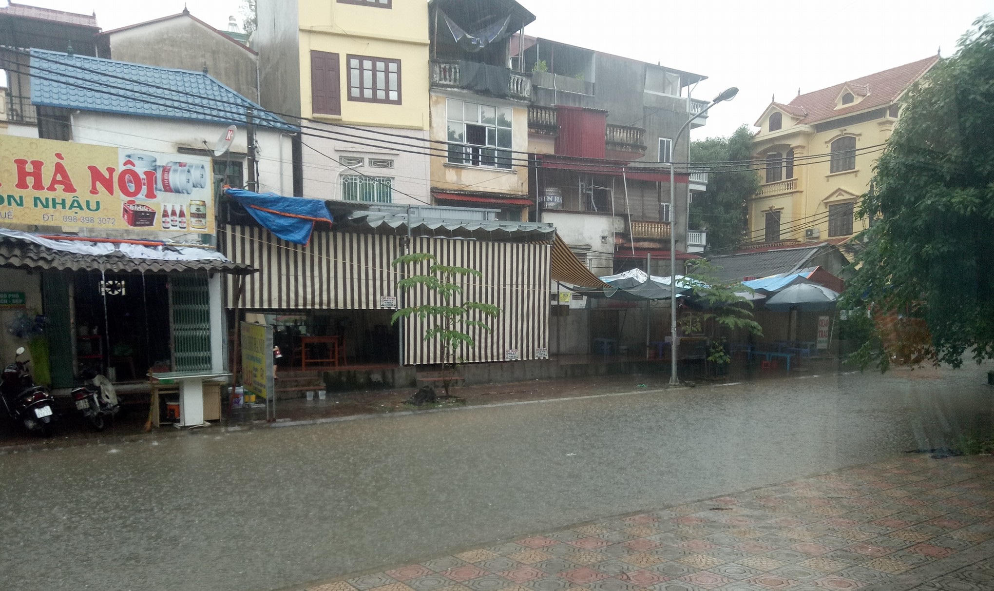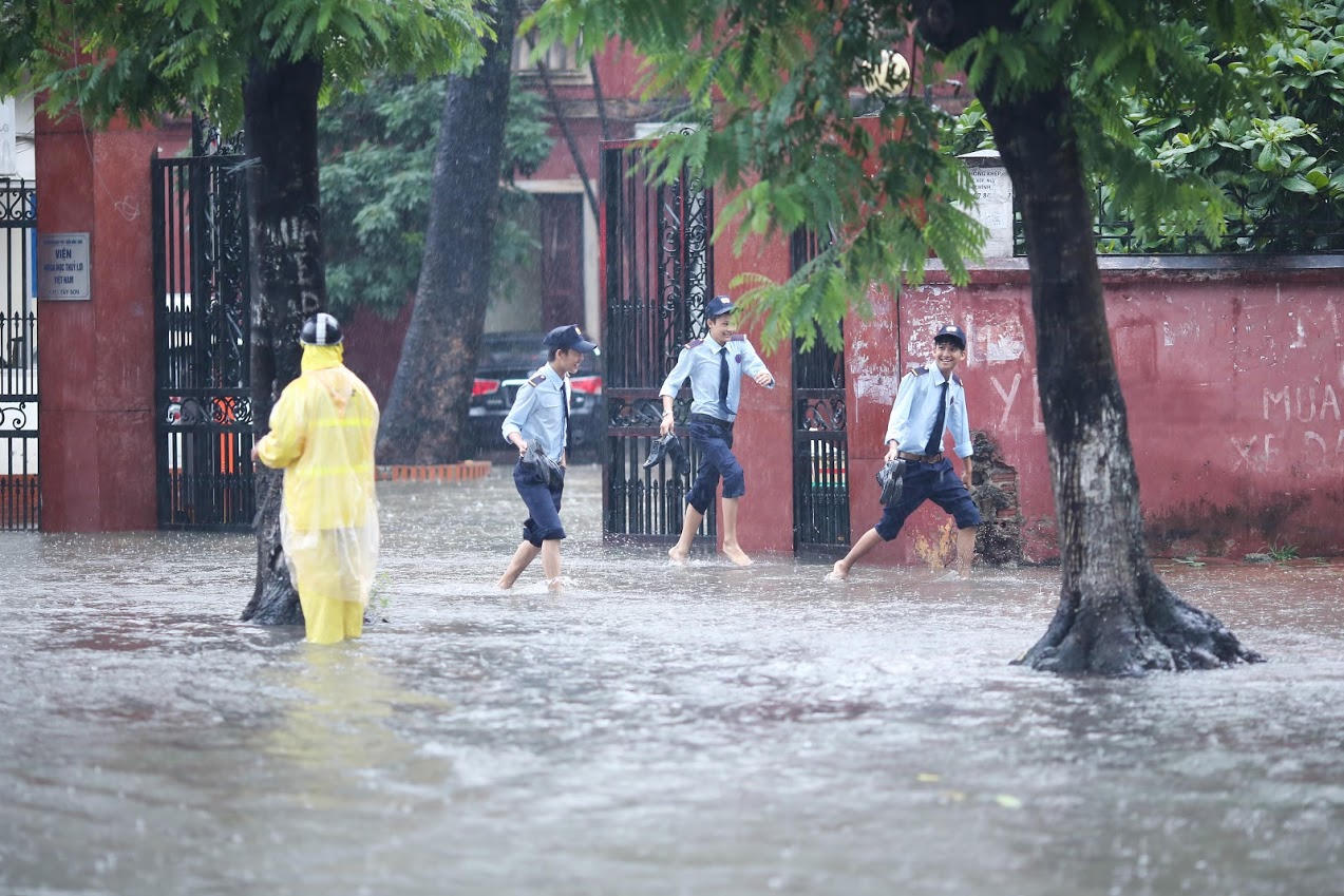 Đường Hà Nội lại ngập sâu trong mưa, nước bắn rát mặt người đi xe máy