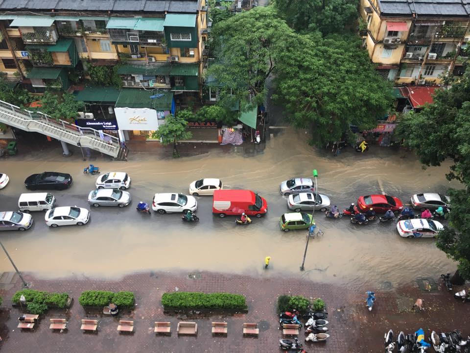 Cơn mưa kéo dài khoảng 2 giờ, khiến nhiều người đi xe máy mặc dù mặc áo mưa vẫn bị ướt. "Cả mặc áo mưa mà người vẫn ướt sũng. Mưa tối tăm cả mặt mày, nước bắn vào rát cả mặt, đỏ hết mắt. Mưa "ác" quá, tôi cứ mắt nhắm mắt mở phóng xe đi", chị Nguyễn Ngọc Thu, đi từ Bờ Hồ về Nguyễn Công Hoan than thở.