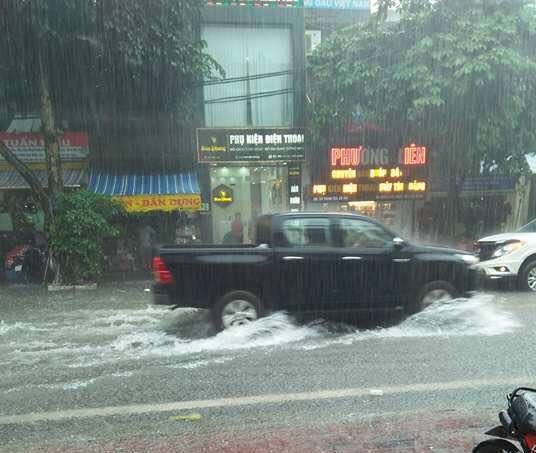 (PLO) - Cơn mưa lớn trưa 4/8 lại gây ngập úng trên nhiều tuyến phố ở Hà Nội khiến phương tiện di chuyển khó khăn.