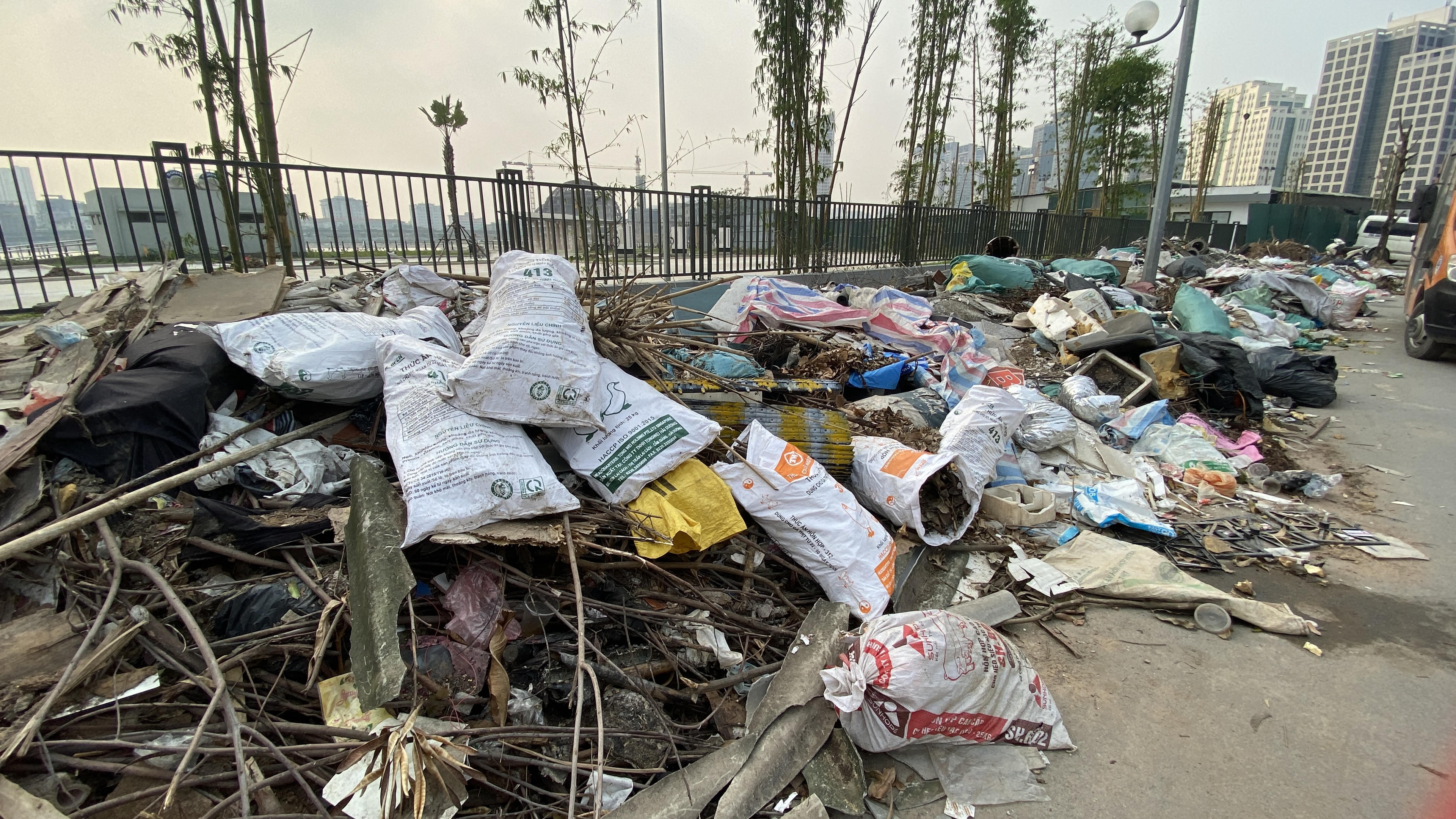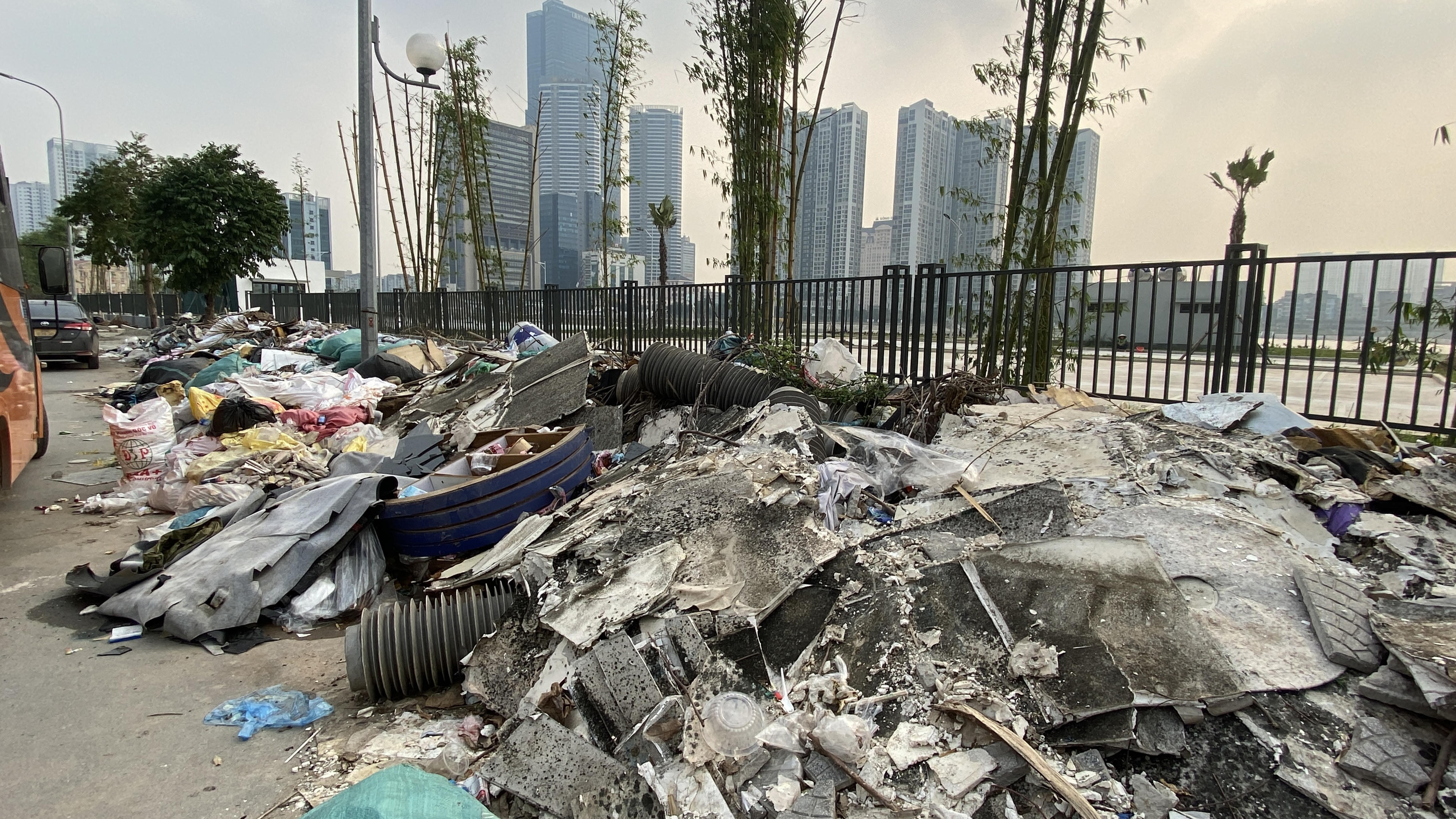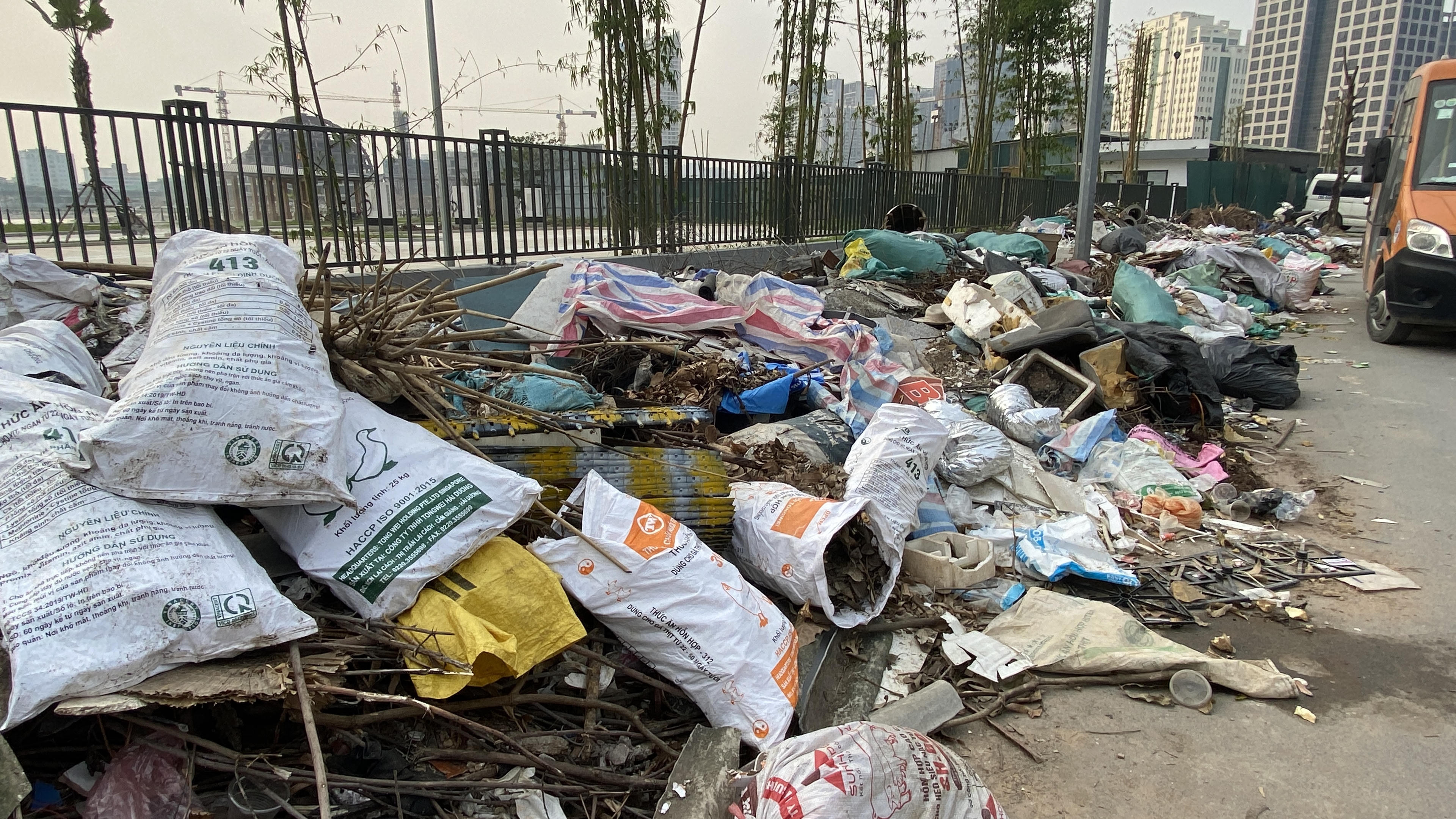 Bãi rác nằm ngay sát Khu công viên và hồ điều hòa CV1 tại Cầu Giấy.