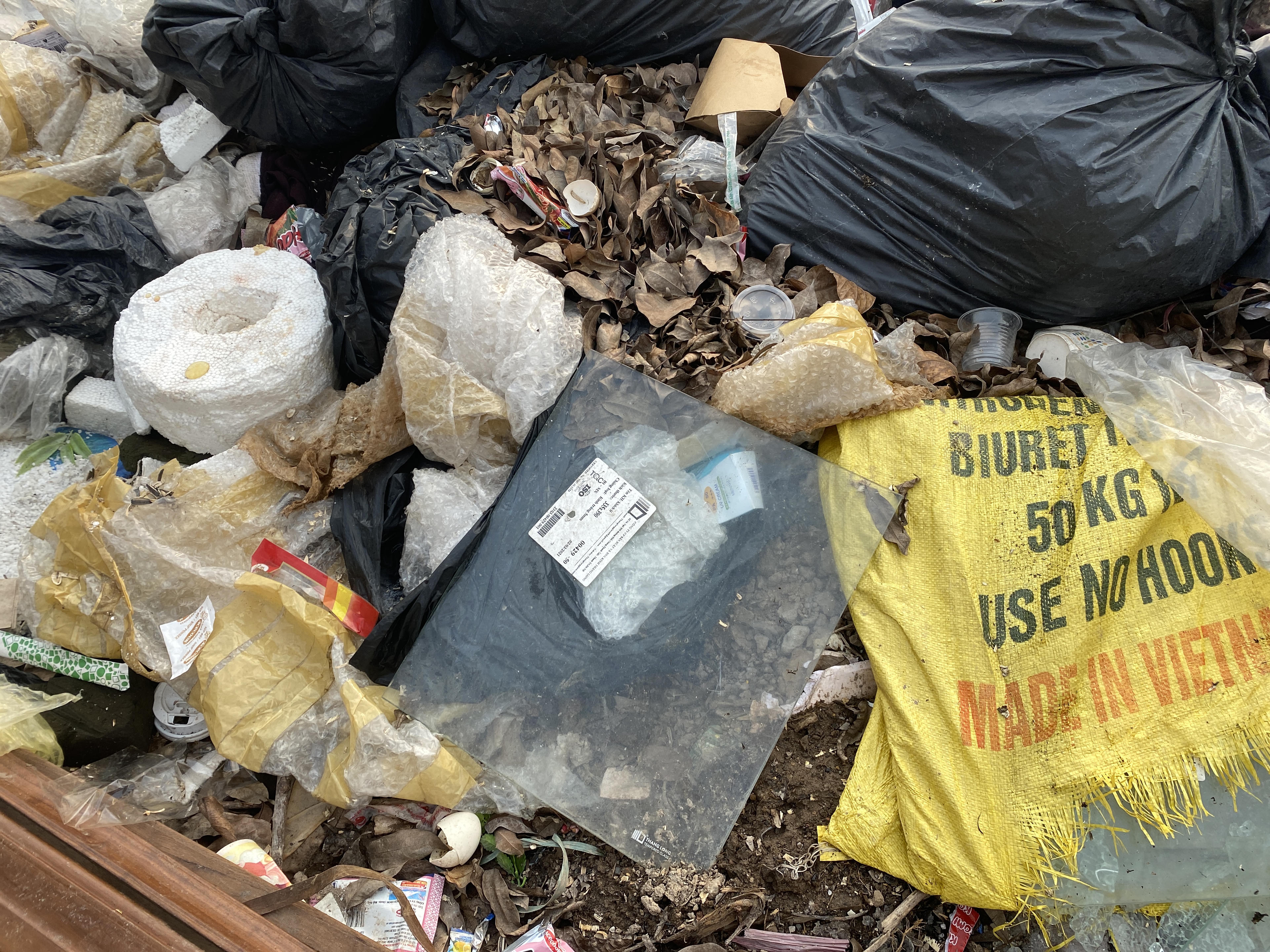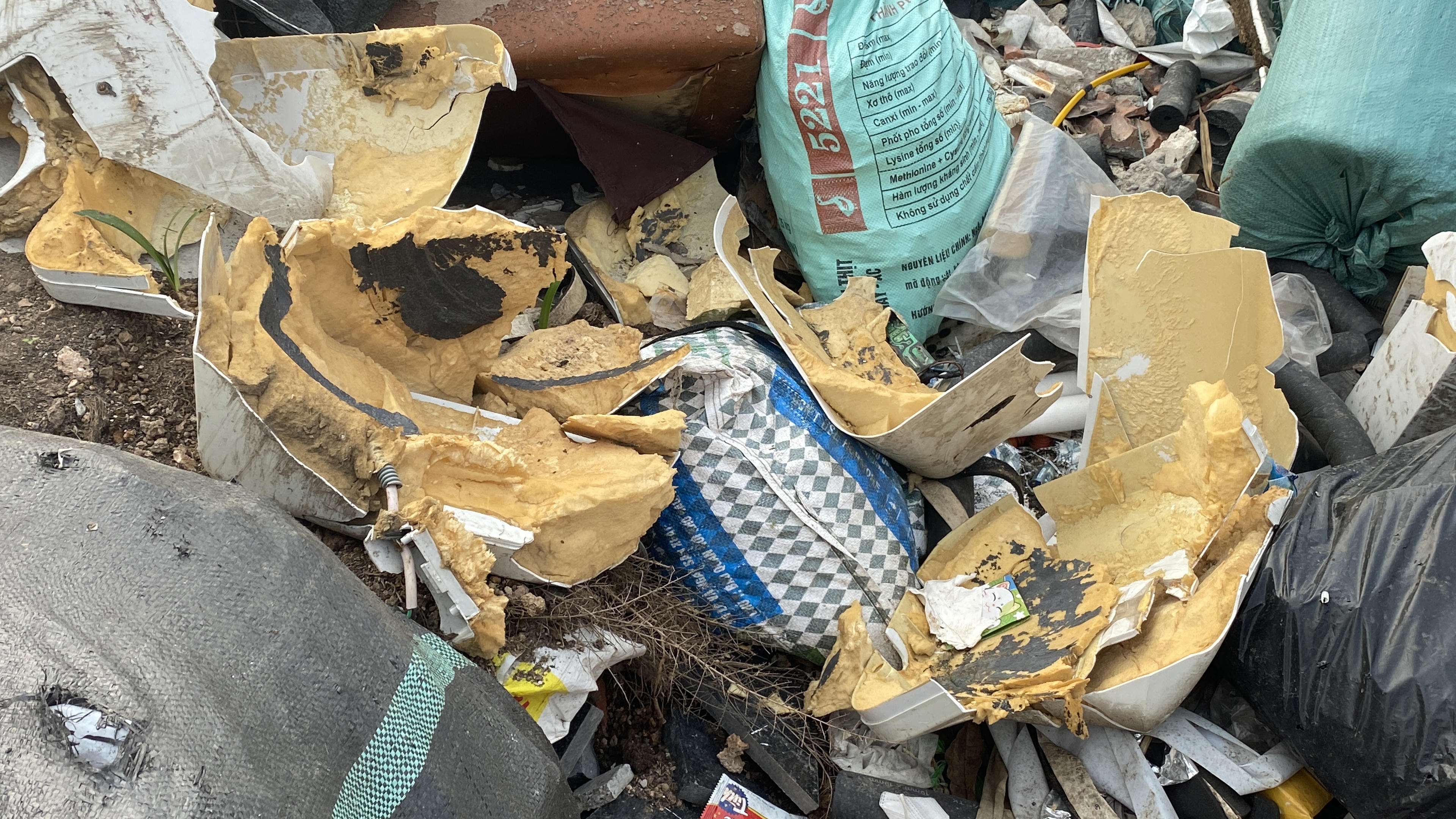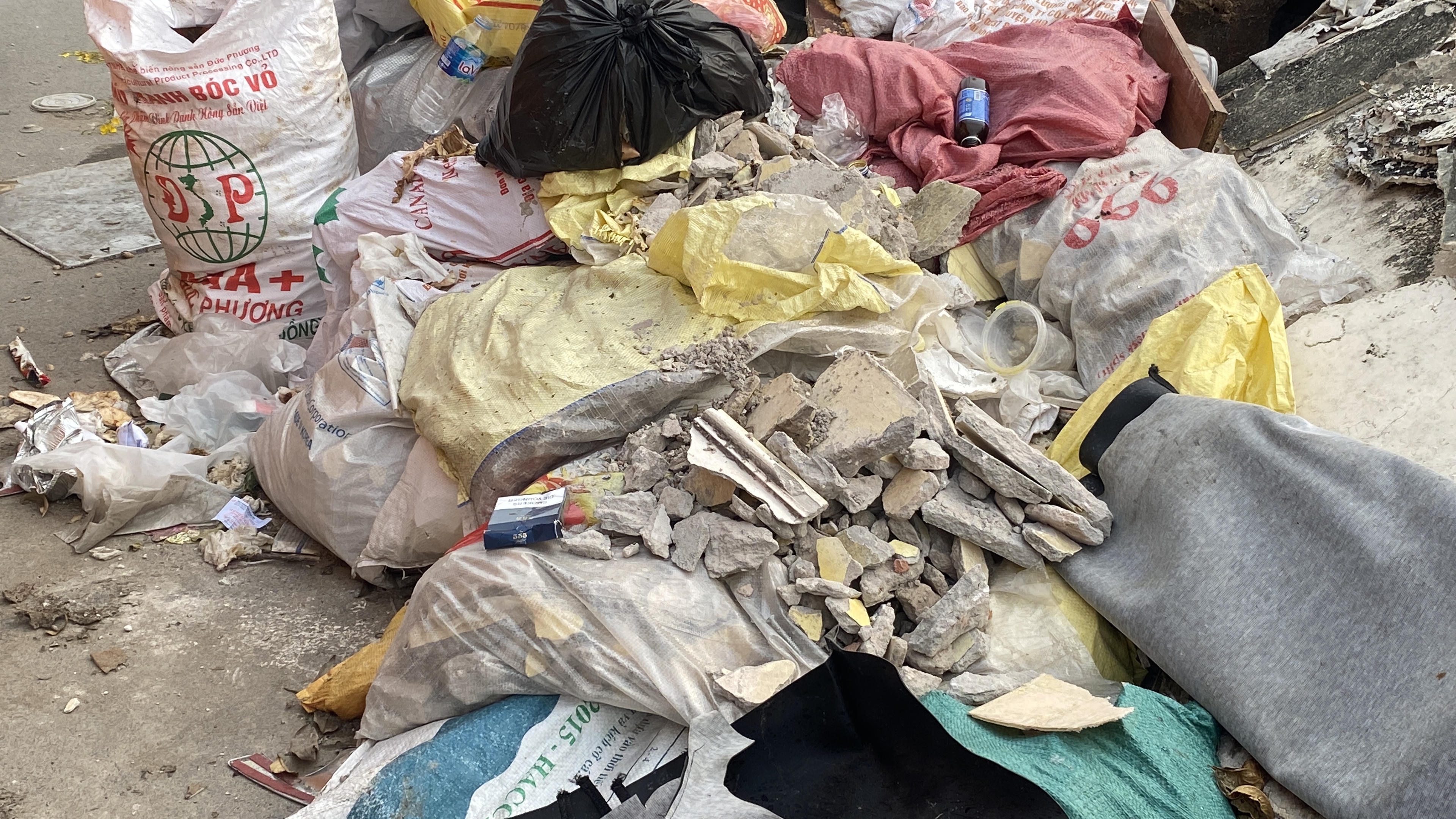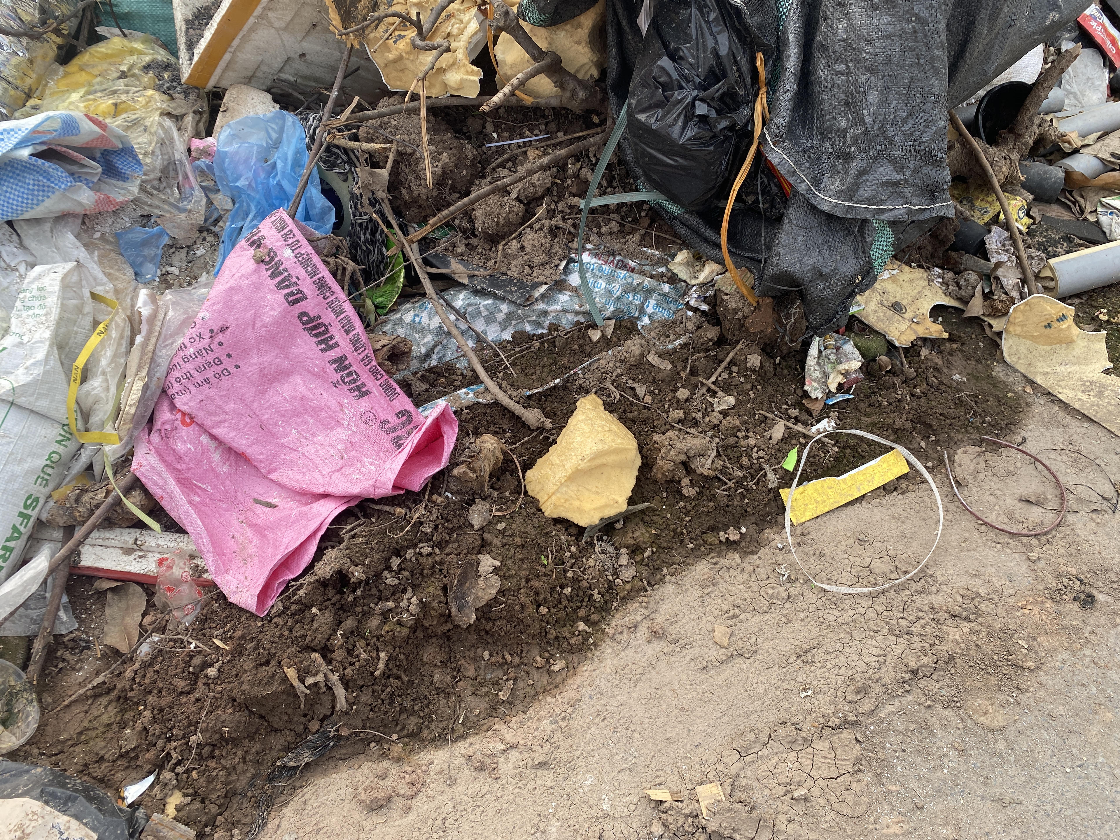 Rác thải đổ tại đây là những vật dụng của gia đình không sử dụng như giường, chăn, nệm, rác thải sinh hoạt và có cả phế liệu xây dựng. Thậm chí những loại rác thải nguy hiểm như: gương, kính vỡ cũng được tập kết tại đây.