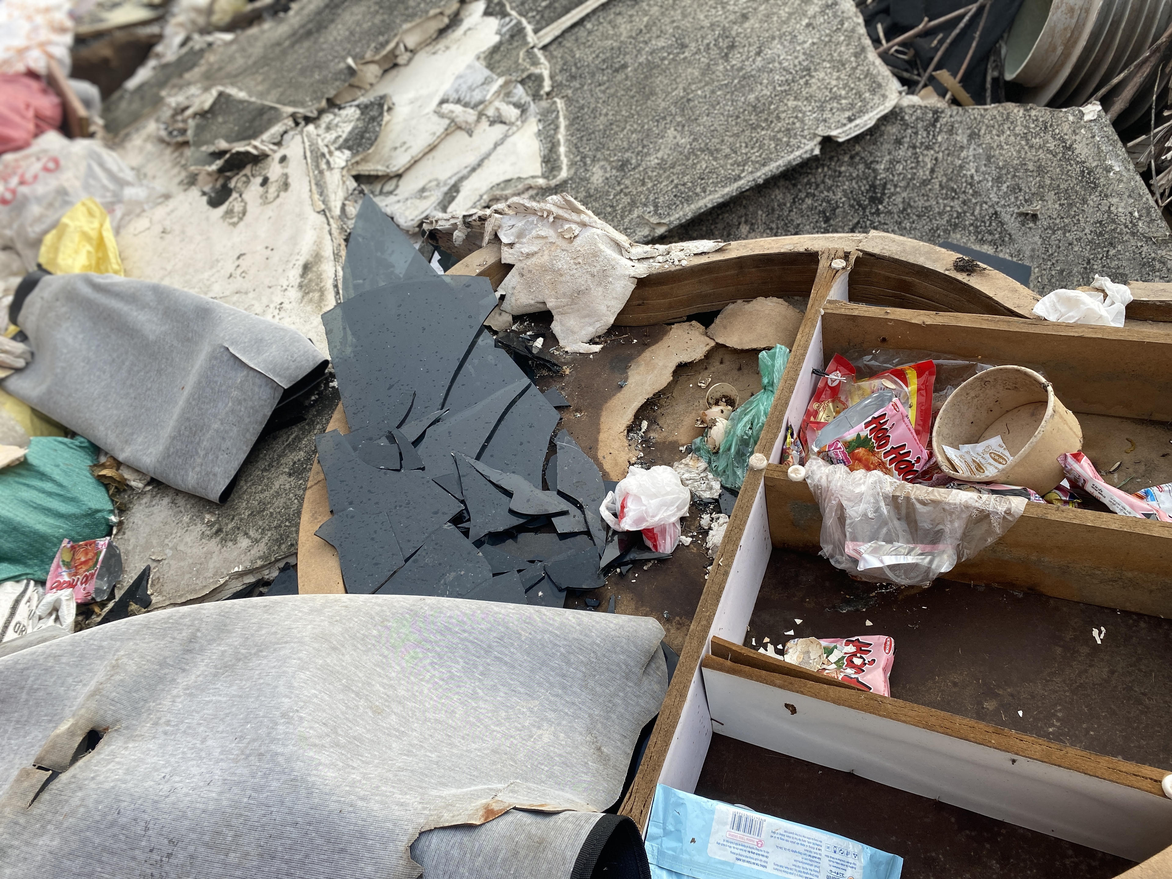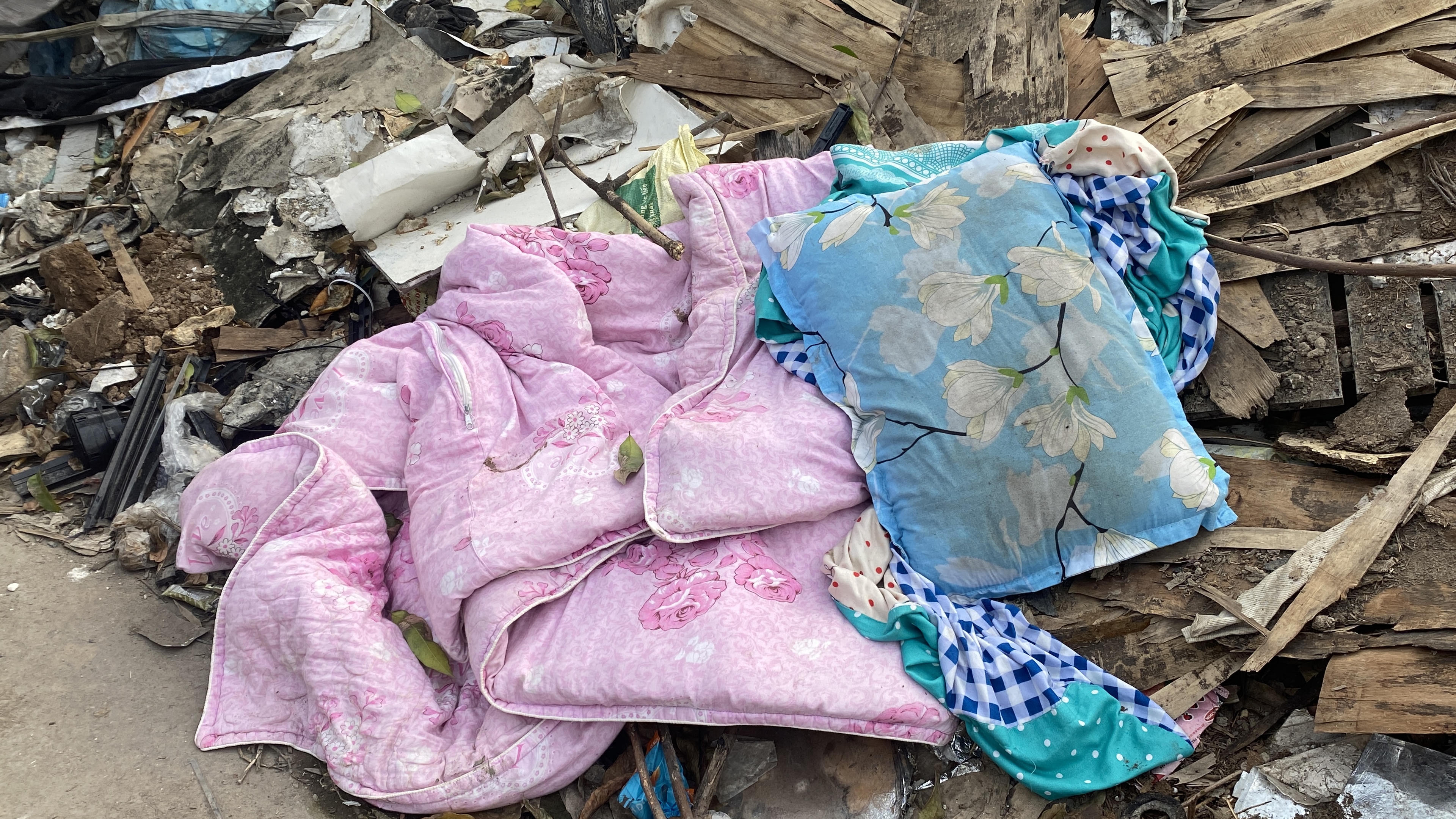 Vật dụng gia đình như chăn, nệm cũng được vứt ở đây.
