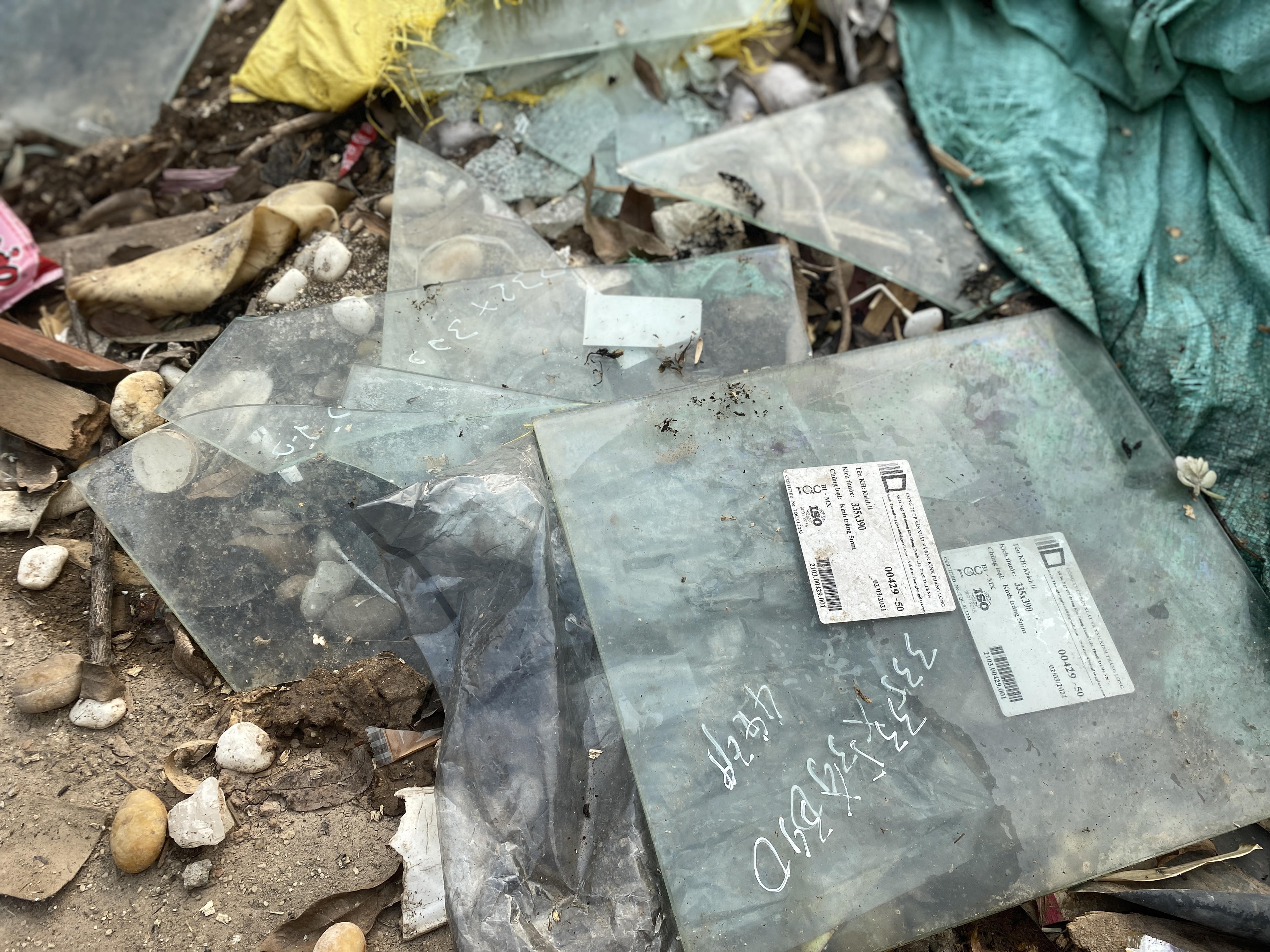 Vật liệu nguy hiểm như kính vỡ cũng "nằm" ở bãi rác này.
