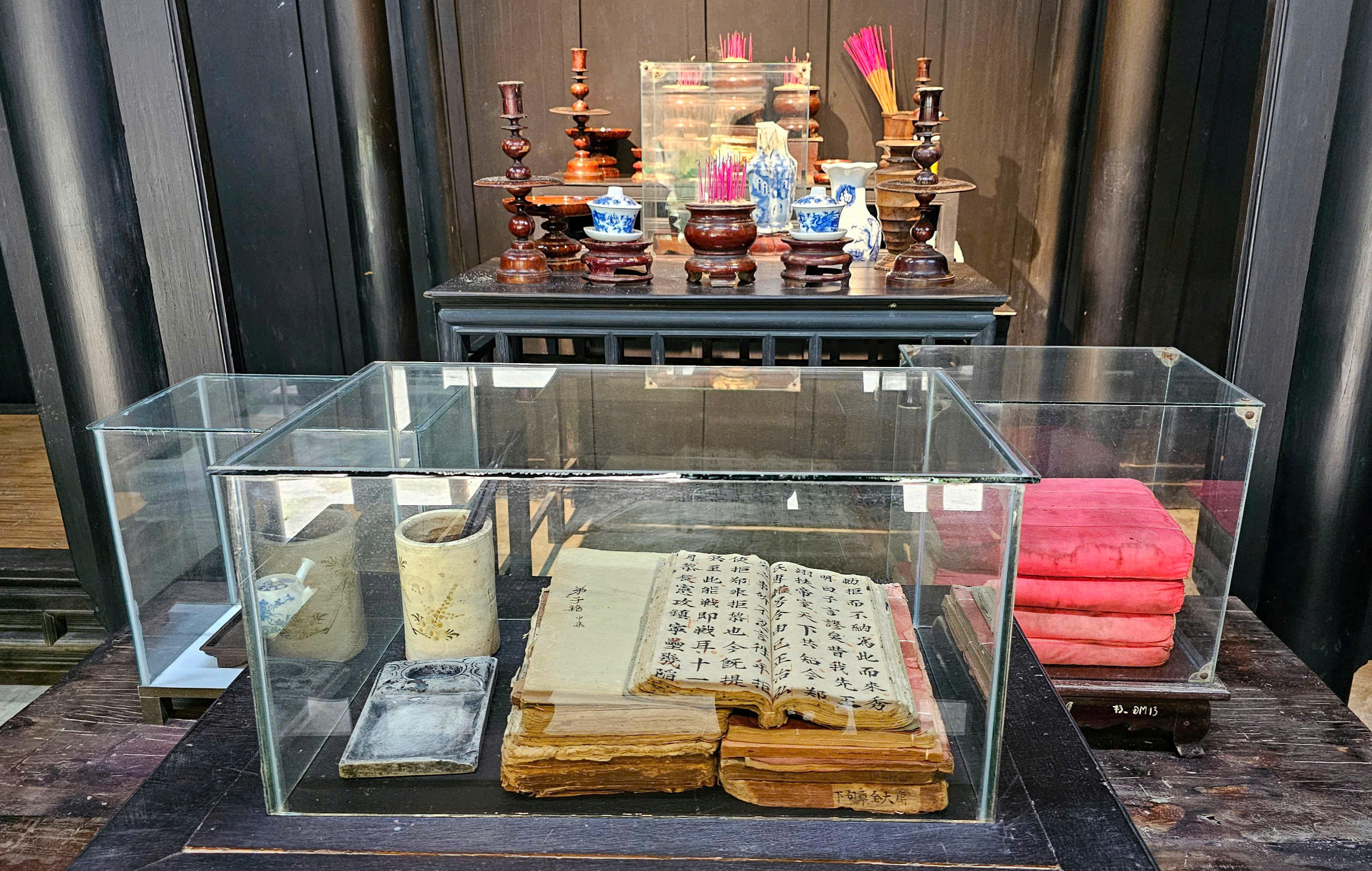 Sách vở, nghiên mực của Chủ tịch Hồ Chí Minh được trưng bày trong nhà lưu niệm |