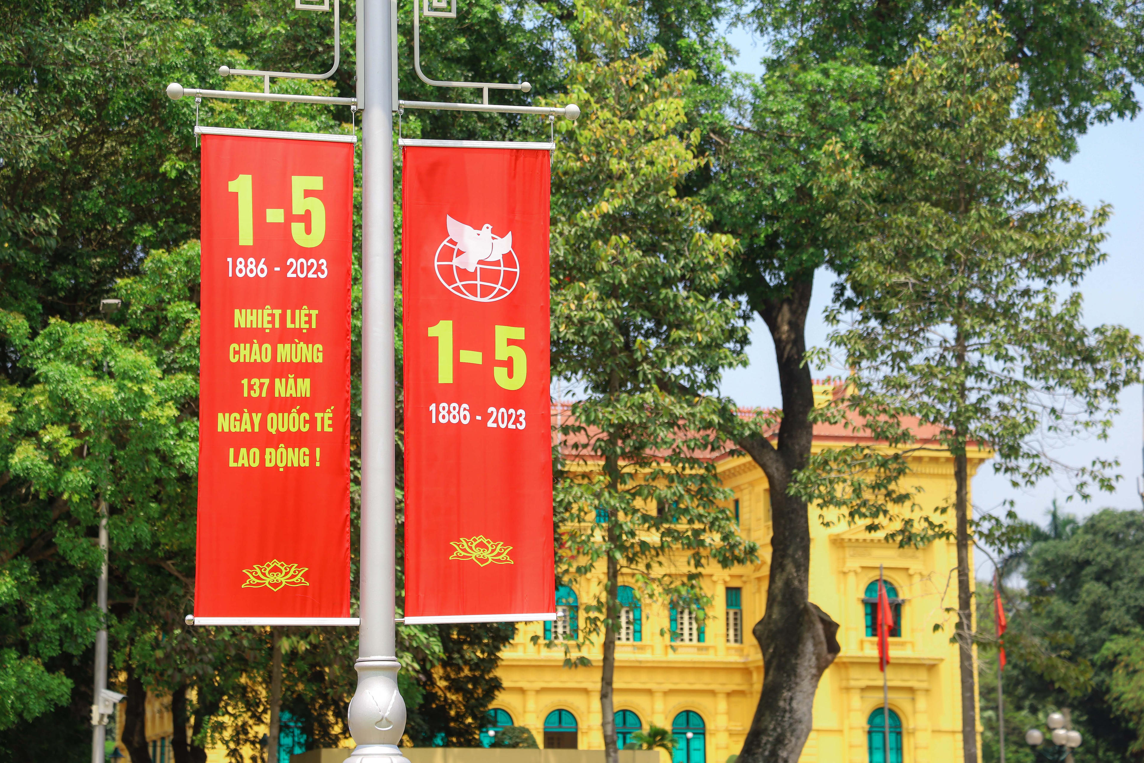 (PLVN) - Những ngày này, nhiều tuyến phố của Thủ đô Hà Nội rực rỡ cờ hoa, biểu ngữ, áp phích… chào mừng 48 năm Ngày Giải phóng miền Nam, thống nhất đất nước (30/4/1975 - 30/4/2023) và 137 năm Ngày Quốc tế Lao động (1/5/1886-1/5/2023).