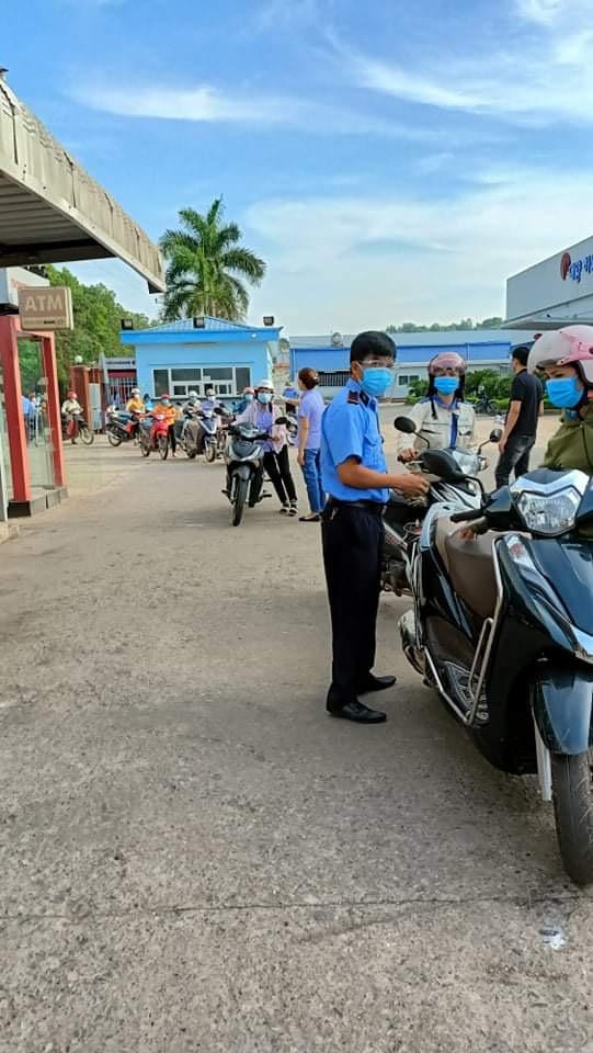 Công nhân đến công ty được đo thân nhiệt tại cổng.