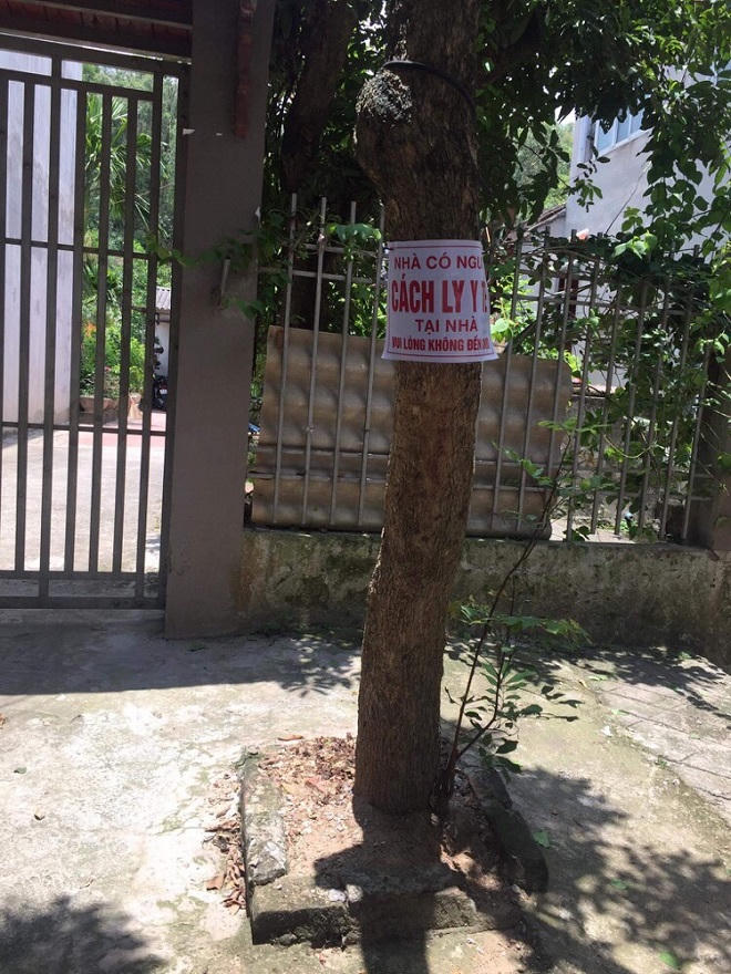 Một bảng thông báo nhà có người cách ly y tế tại xã Quế Nham.