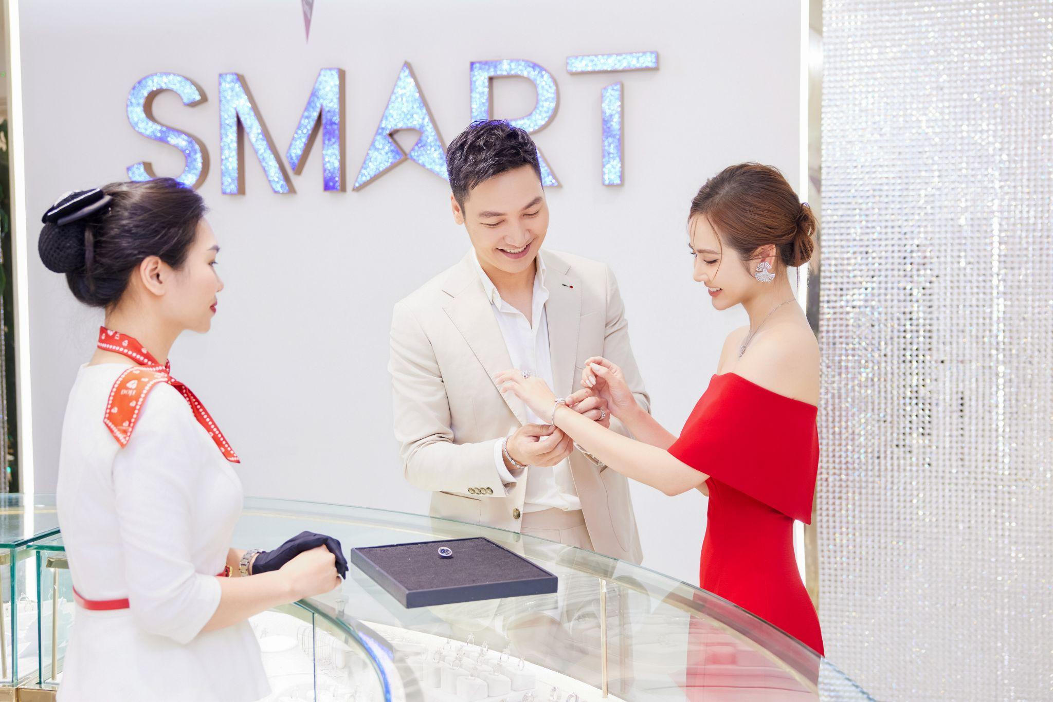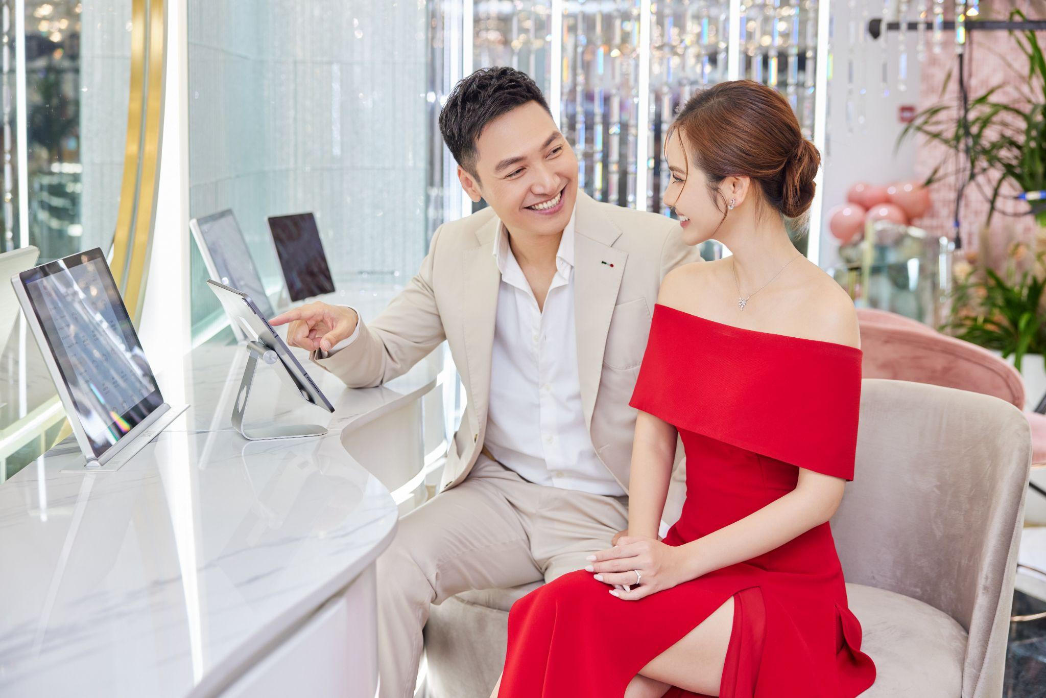 Cặp đôi cùng nhau trải nghiệm mua sắm trang sức thông minh độc đáo tại DOJI SMART. |