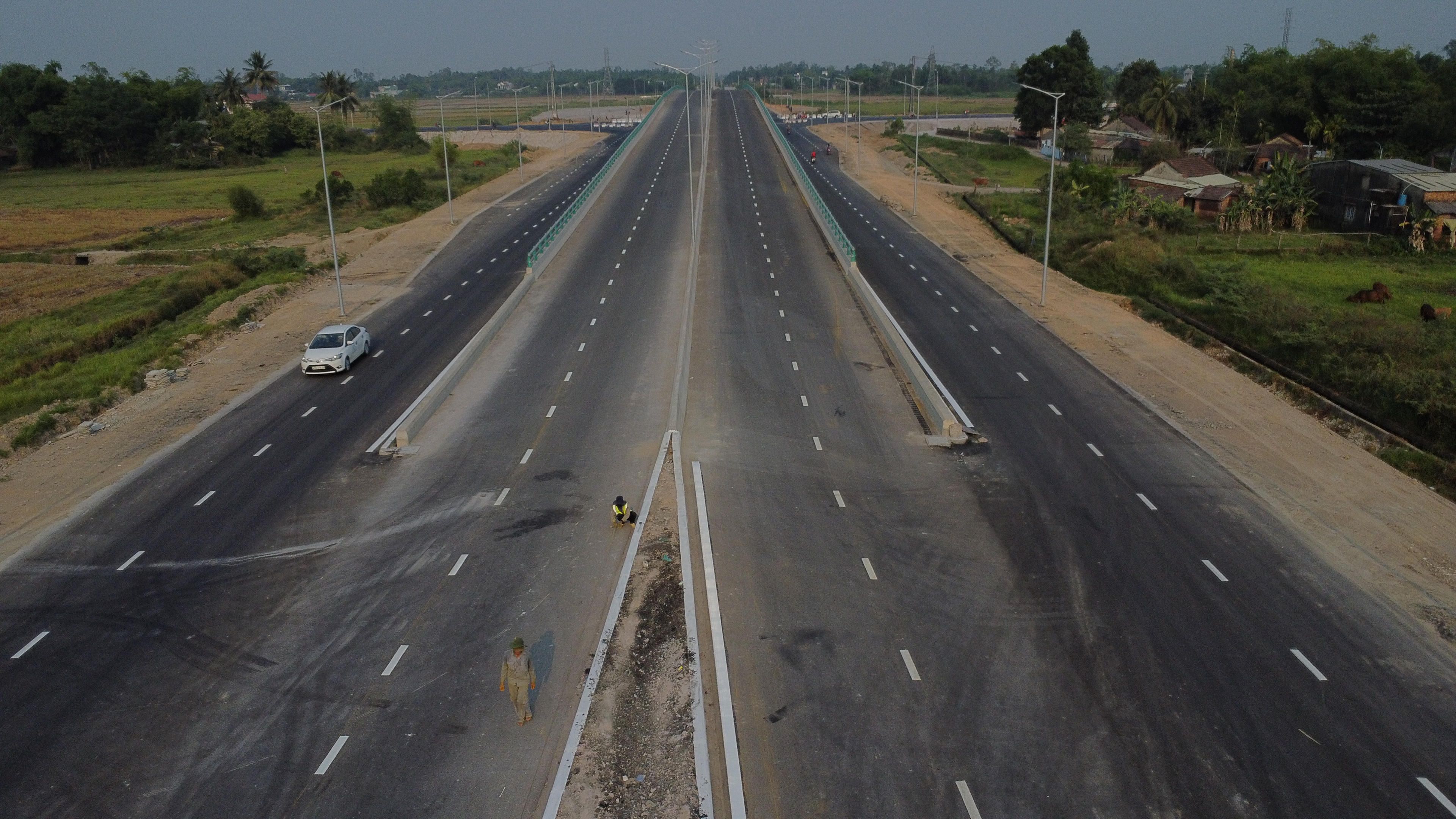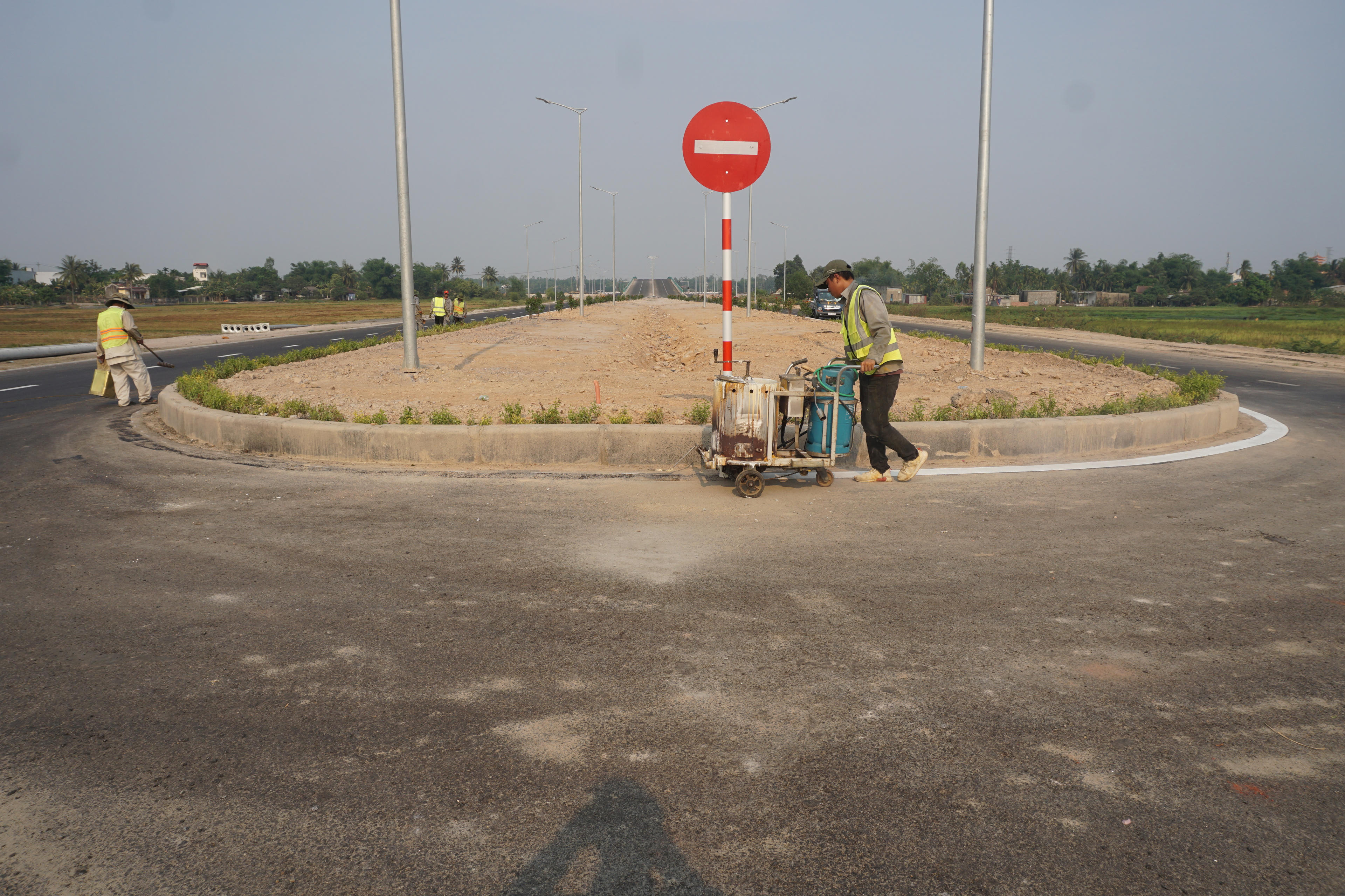 Các công nhân đang gấp rút hoàn thành hạng mục cuối cùng như kẻ vạch, làm sạch mặt đường... để đưa dự án về đích.