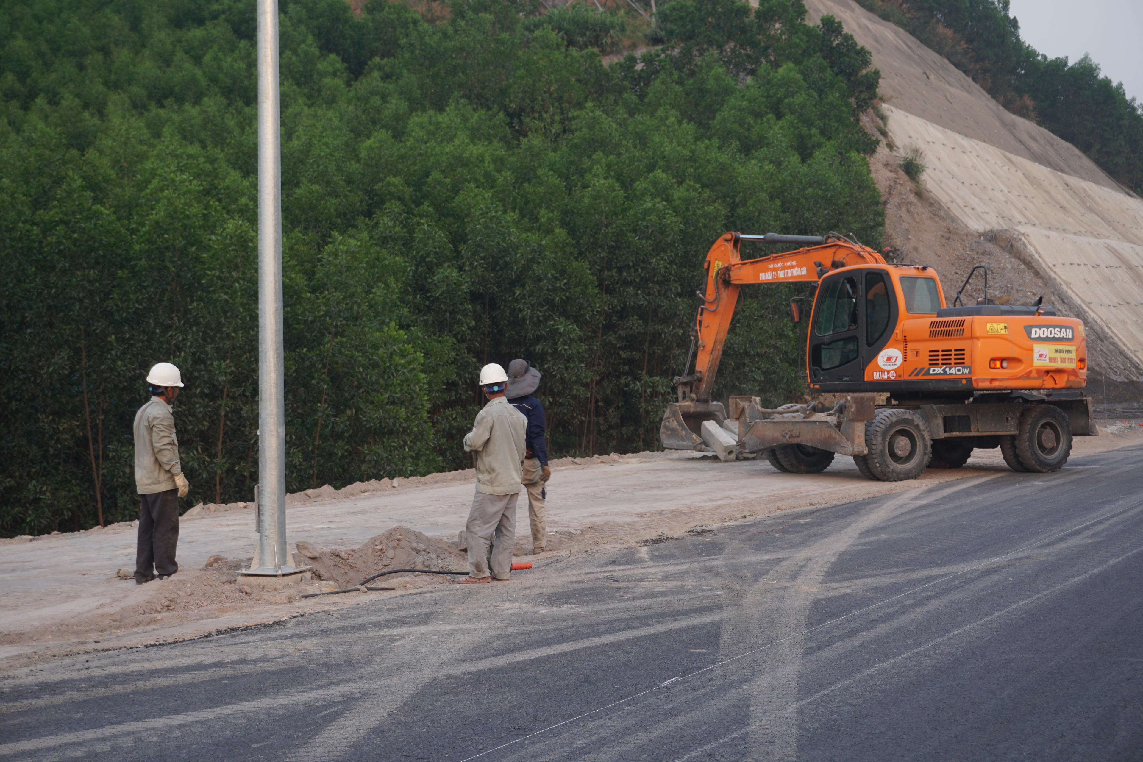 Đường vành đai với hai làn xe, mặt đường đã thảm nhựa toàn tuyến.