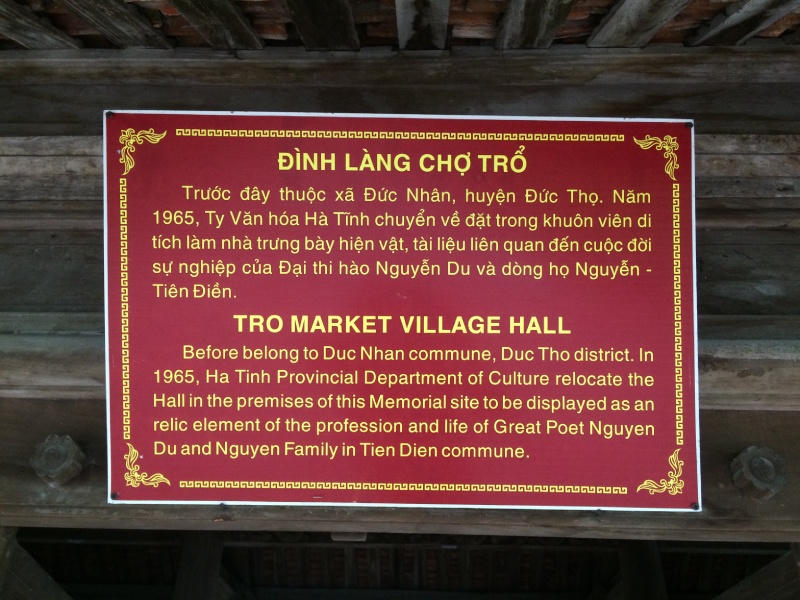 Thời điểm đó tỉnh còn khó khăn, các công trình kiến trúc từ thời Nguyễn Du còn lại cũng rất hiếm hoi. Cán bộ văn hóa tỉnh đi tìm khắp nơi và phát hiện đình Chợ Trổ có những điều kiện hoàn toàn phù hợp. Theo yêu cầu của các ban ngành cấp tỉnh lúc đó, địa phương đã nhường lại ngôi đình Chợ Trổ chuyển về xã Tiên Điền, huyện Nghi Xuân để làm nơi tưởng niệm, trưng bày một số hình ảnh đại thi hào Nguyễn Du dưới hình thức “cho mượn”.