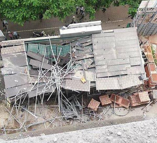 Trong quá trình cẩu bó hộp sắt kích thước 50cm, dài 6m từ đất lên lên tầng 6 cách mặt đất khoảng 20m thì bất ngờ dây cáp cẩu đứt khiến hộp sắt rơi xuống trúng nhà điều hành của dự án. Nhiều đồ dùng trong khu nhà bị hư hỏng nặng, 2 nhân viên bán hàng đang ngồi trong phòng bị thương là chị Đặng Ngân Hà (SN 1988, quê Nam Định) và anh Nguyễn Xuân Quân (SN 1991, tại Hà Nội) . Cả hai nạn nhân đã được đưa đi bệnh viện.