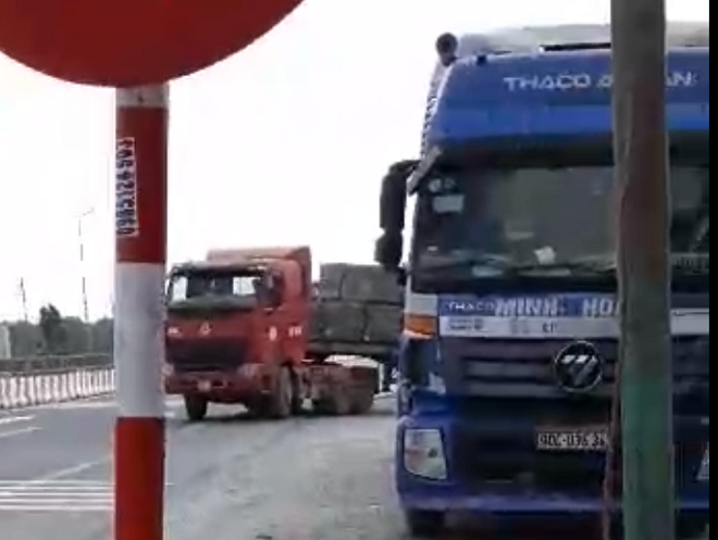 Trong một clip mà chúng tôi ghi lại được, một xe đầu kéo chở vật liệu xây dựng đi từ khu vực dự án ra Quốc lộ 1A còn ngang nhiên đi ngược chiều. “Xe từ trong khu vực công ty Xuân Mầu làm dự án đi ra. Họ đi ngược chiều để trốn trạm thu phí nhưng với xe tải trọng như vậy lại đi ngược chiều mà xảy ra tai nạn thì không biết hậu quả sẽ khủng khiếp như thế nào”, một người dân cho hay.