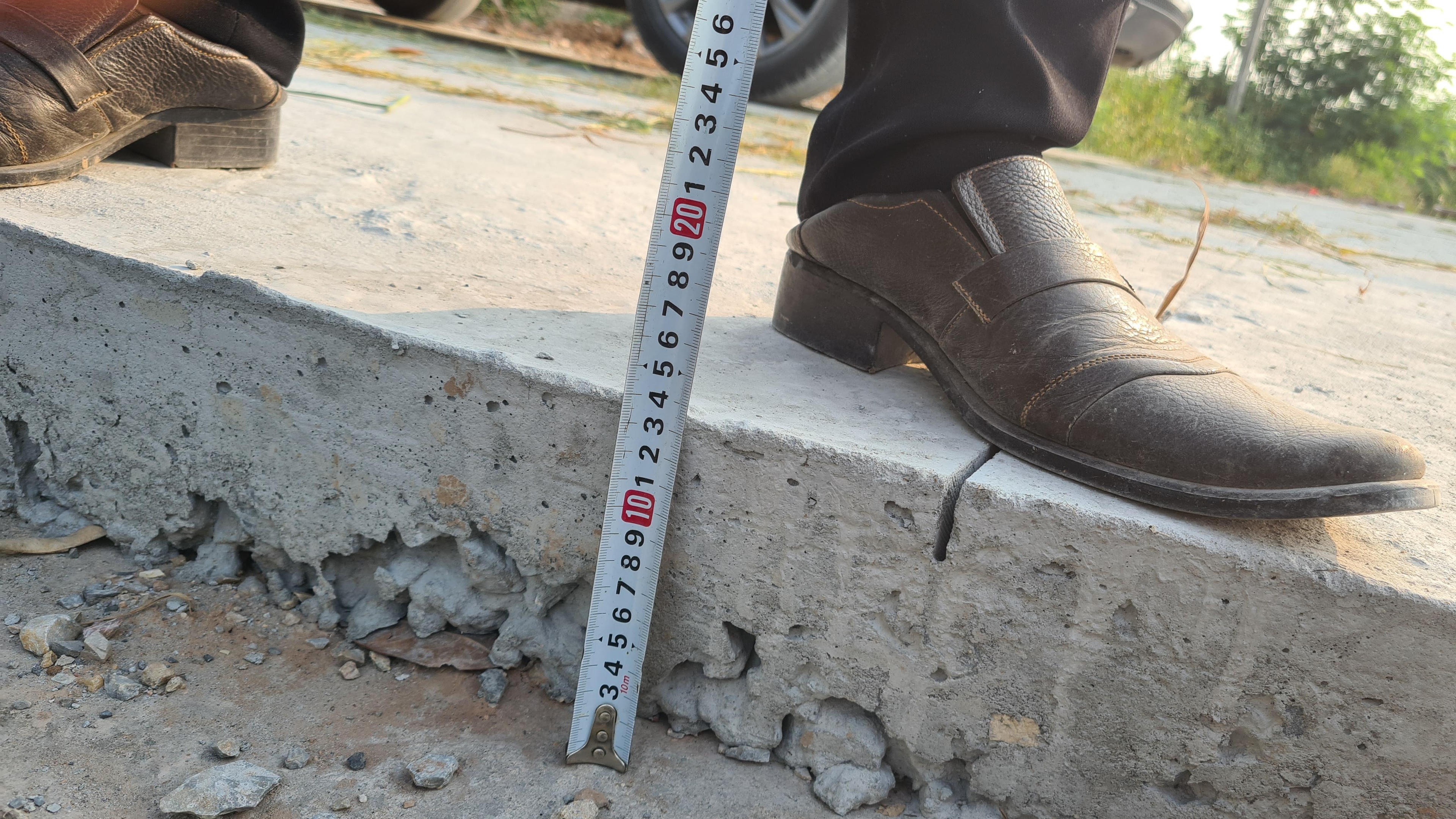 Theo dự toán của gói thầu, để đáp ứng được yêu cầu kỹ thuật, nhà thầu phải đổ lớp bê tông mặt đường có chiều dày 20cm. Nhưng thực tế, một số đoạn, Công ty TNHH Kim Thành chỉ thi công 14cm đến 17cm.