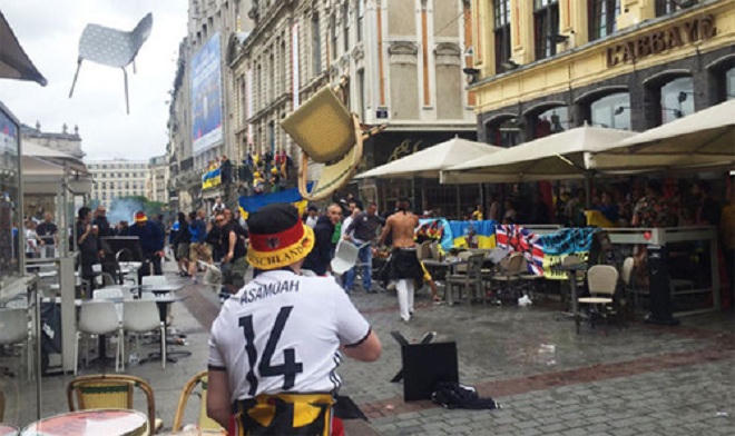 Mặc dù Cơ quan quản lý bóng đá Châu Âu (UEFA) vừa đưa ra án phạt cùng tuyên bố sẽ loại đội tuyển Nga khỏi Euro 2016, nếu hooligan nước này tiếp tục quậy phá, nhưng họ vẫn tấn công cổ động viên Anh và xứ Wales, rạng sáng 15/6, ở trung tâm thành phố Lille.