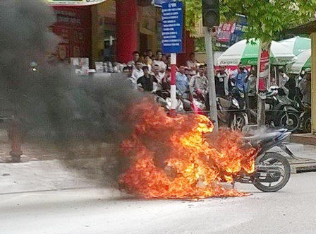 Vào khoảng 10h15 phút sáng ngày 27/7, anh Bùi Thành Đạt (SN 1992, trú tại TP.Thanh Hóa) điều khiển chiếc xe máy hiệu Exciter mang biển số 36B1-608.92, đến ngã tư đường Trần Phú giao nhau với đường Lê Quý Đôn (TP.Thanh Hóa) thì chiếc xe phát hỏa bốc cháy.
