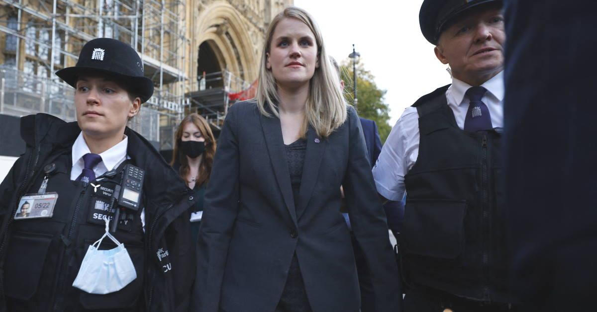 Frances Haugen rời Nhà Quốc hội ở trung tâm London vào ngày 25/10/2021 sau khi đưa ra bằng chứng trước Ủy ban hỗn hợp về dự thảo Luật An toàn Trực tuyến. Ảnh: AFP |