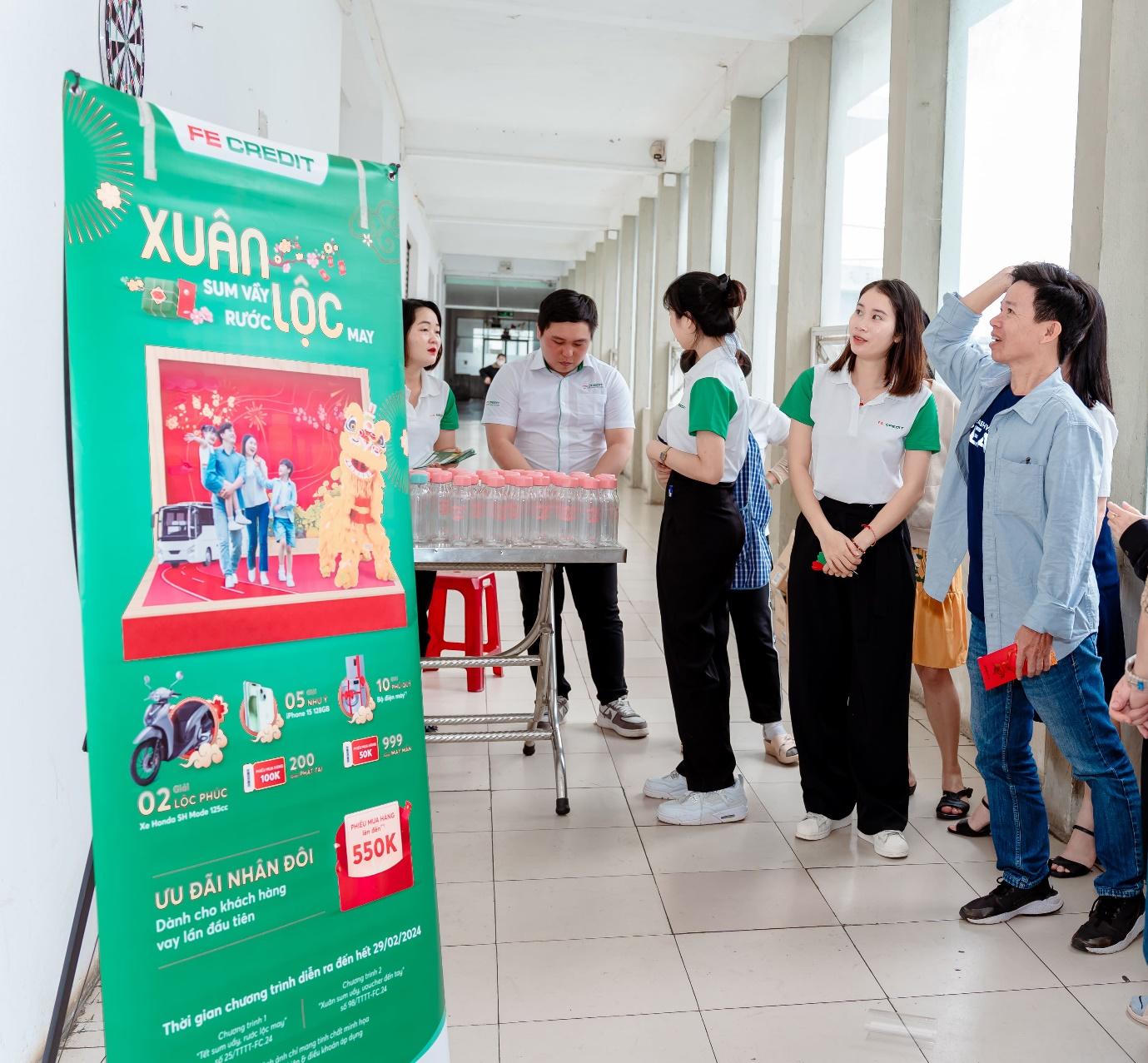 Từ đầu năm 2024, đại diện của FE CREDIT đã có mặt ở hàng chục khu công nghiệp thuộc 9 tỉnh, thành như: Hồ Chí Minh, Hưng Yên, Long An, Bình Dương, Phú Thọ, Bắc Ninh, Quảng Ngãi, Đà Nẵng, Đồng Nai để trao tặng quà Tết, đồng thời trao đổi và chia sẻ về sản phẩm vay để người lao động dễ dàng tìm thêm giải pháp tài chính cho riêng mình.