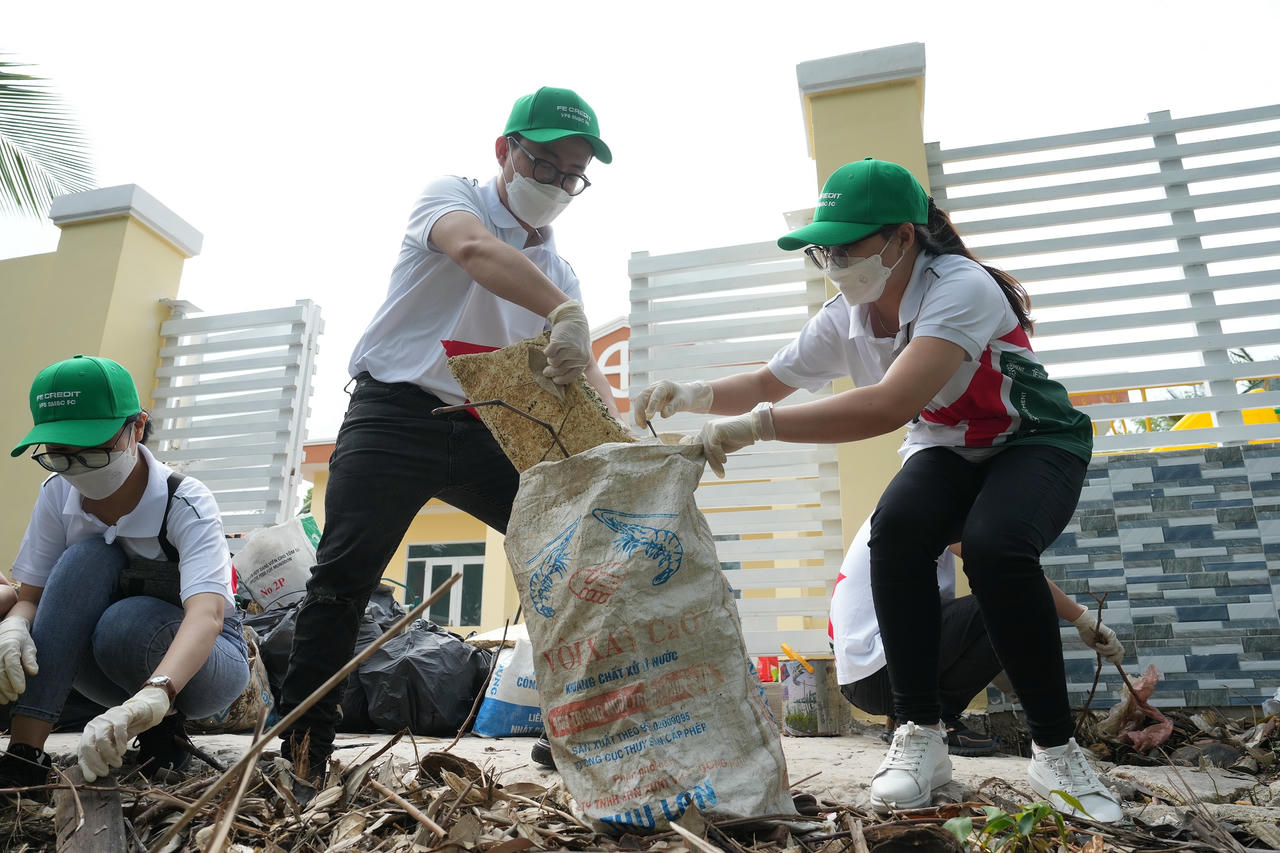 Các bạn trẻ FE CREDIT tham gia dọn dẹp vệ sinh môi trường, thu gom rác thải |