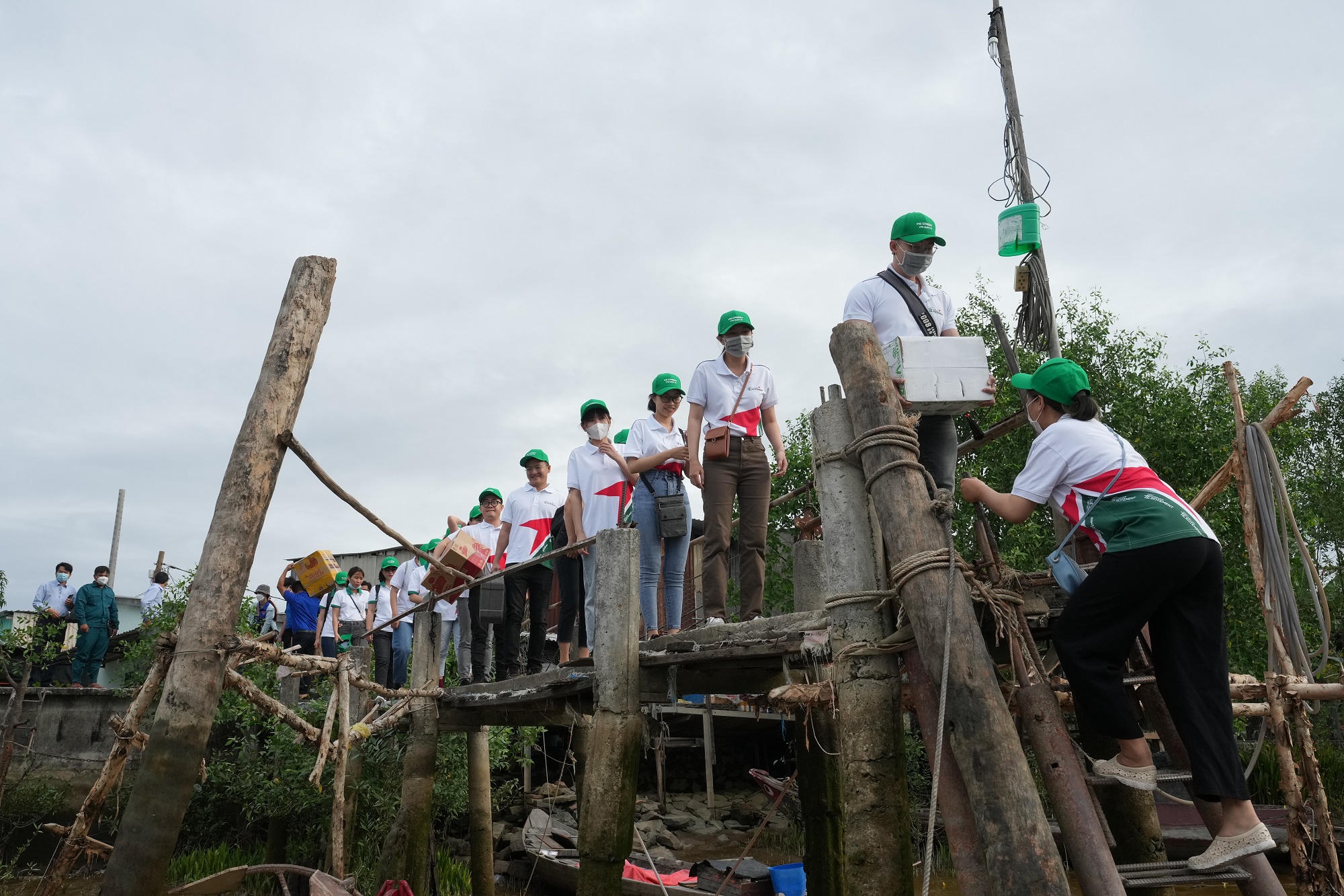 Sau khi đi xe hơn 45 phút; đi phà, đi thuyền 30 phút và qua những chiếc cầu tre khúc khuỷu thì đoàn cũng đến nơi để trao tặng những phần quà ý nghĩa đến bà con. Tại đây, các bạn trẻ FE CREDIT đã tận tay trao đi những tấm lòng yêu thương cho bà con nghèo, những em nhỏ.