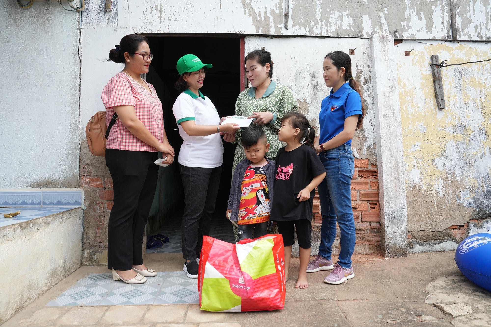 Thấu hiểu khó khăn của bà con nơi đây, FE CREDIT đã phối hợp cùng Đoàn Thanh niên Thông tấn xã Việt Nam khu vực phía Nam tổ chức chương trình chăm lo Tết cho người dân vùng khó khăn với chủ đề "Xuân chia sẻ - Tết yêu thương". Đoàn xe xuất phát 6h sáng chở theo 54 phần quà nhu yếu phẩm cùng tiền mặt để người dân có thể trang trải thêm cho gia đình trong dịp Tết sắp tới.