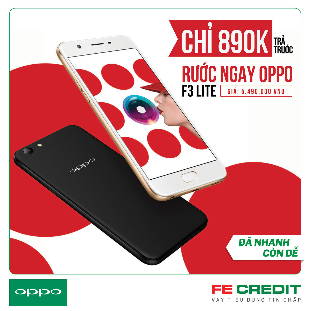FE CREDIT ưu đãi chỉ 890 nghìn trả trước, rước ngay OPPO F3 LITE