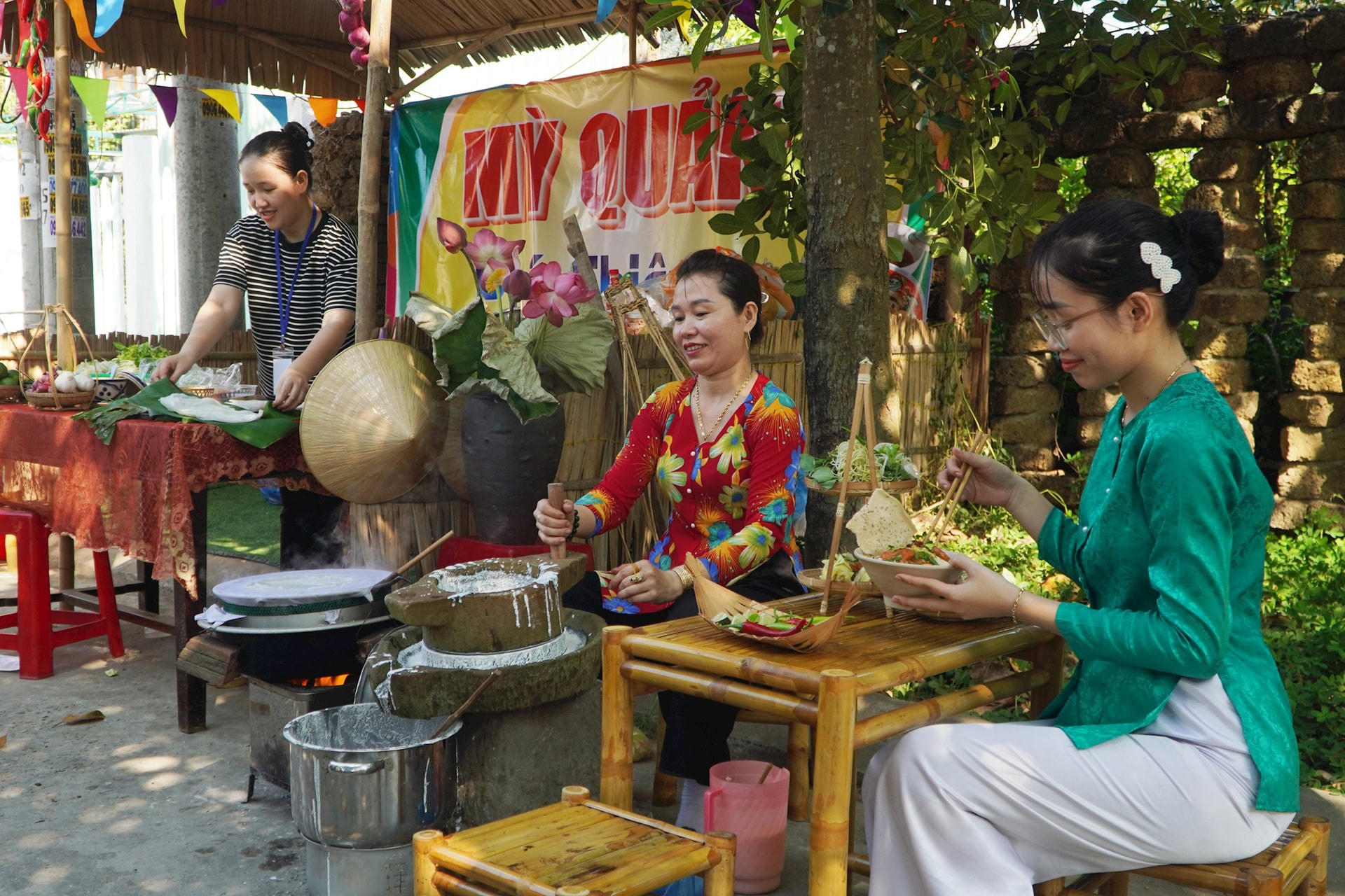 Tại không gian ẩm thực mang đậm phong cách làng quê xứ Quảng, hàng trăm du khách háo hức xếp hàng để tự tay xay bột, tráng mỳ và nấu những tô mỳ Quảng chính hiệu, dưới sự hướng dẫn tận tình của các nghệ nhân lâu năm trong nghề. Trong đó, mỳ Phú Chiêm, món ăn có tuổi đời hàng thế kỷ trở thành điểm nhấn không thể bỏ qua.