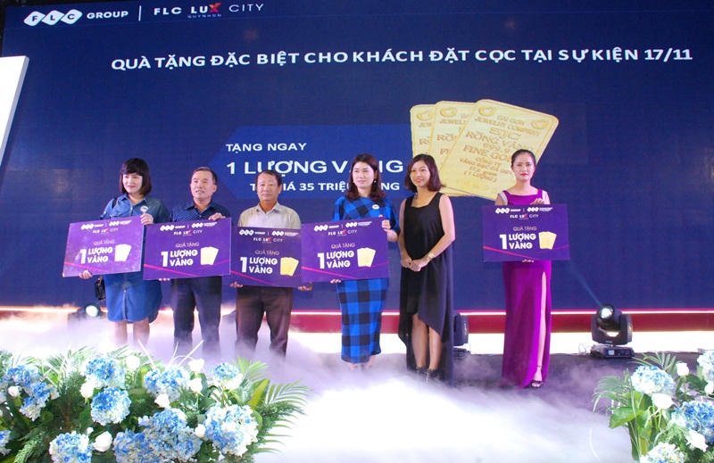 Nhân dịp này, chủ đầu tư dành ưu đãi đặc biệt tặng vàng không giới hạn cho khách, áp dụng với mỗi căn nhà phố thương mại hoặc biệt thự đăng ký giữ chỗ thành công. Tại sự kiện, hàng trăm khách hàng đã quyết định đăng ký đặt giữ chỗ sản phẩm tại FLC Lux City Quy Nhơn và nhận ngay một lượng vàng 9999 từ chủ đầu tư.