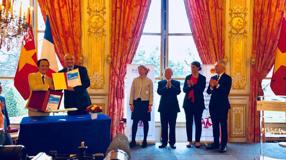 Vào lúc 15h45 ngày 26/3/2018 (giờ địa phương), Hợp đồng thoả thuận chính thức về việc mua 24 máy bay A321NEO giữa Tập đoàn FLC và Tập đoàn Airbus (châu Âu) đã được chính thức ký kết, dưới sự chứng kiến của Tổng Bí thư Nguyễn Phú Trọng và Chủ tịch Quốc hội Pháp François de Rugy. Đại diện ký kết của hai doanh nghiệp là Chủ tịch Tập đoàn FLC Trịnh Văn Quyết và Phó Chủ tịch Airbus phụ trách thương mại Eric Schulz.